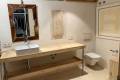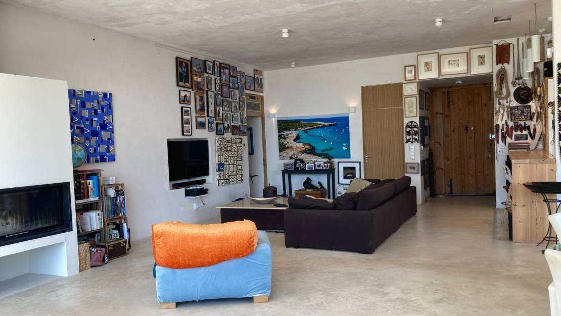 El interior de la propiedad esta compuesto por un salon amplio con una cocina estilo americano con espacios abiertos con grandes cristaleras para disfrutar de las vistas y con acceso directo a la terraza , el dormitorio principal también dispone de una gran cristalera con acceso directo , un vestidor y su propio baño en suitte . El segundo dormitorio es amplio también con su propio vestidor y con una puerta que accede a el cuarto de baño que se utiliza como propio de esa habitación y como aseo de invitados , con dos puertas una desde el salon y otra de el dormitorio.