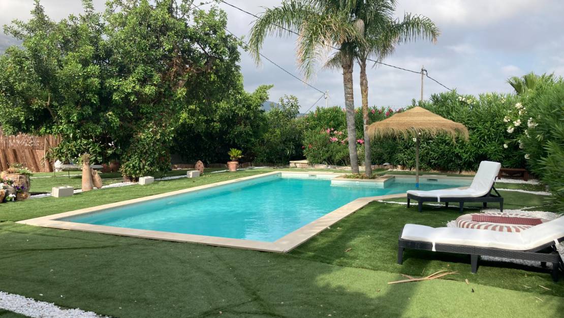 El exterior de el chalet tiene un espacios para tres o cuatro coches , una bonita y acogedora piscina con un jardín con vegetación e césped artificial que hacen de el chalet mucho mejor para disfrutar de muy buenos momentos en la terraza durante casi toda parte de el año.