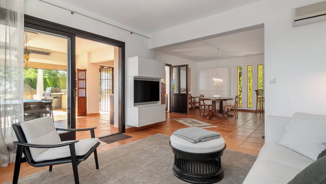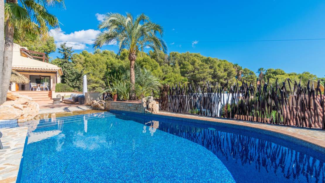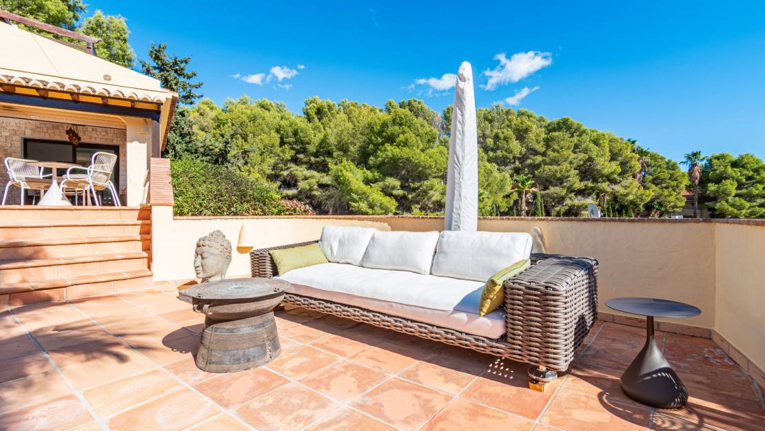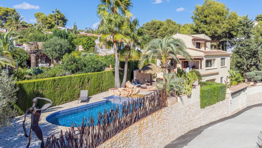 Impresionante villa con piscina y vistas al mar en una zona muy tranquila. La casa tiene tres plantas, en la primera planta se encuentra el garaje y dos dormitorios con dos baños, la lavandería y el trastero. En la segunda planta se encuentra el salón con preciosas vistas y la cocina abierta con comedor, una preciosa terraza con puertas correderas para disfrutar de las vistas al mar y piscina en todo momento. Alrededor de la piscina hay un bonito jardín bien cuidado. En el tercer piso se encuentra el dormitorio principal con baño y vestidor, también hay una increíble terraza con vistas panorámicas al mar. La casa está muy bien mantenida y se vende con los muebles de casa y jardín incluidos en el precio. A sólo unos minutos en coche del mar y de los supermercados.