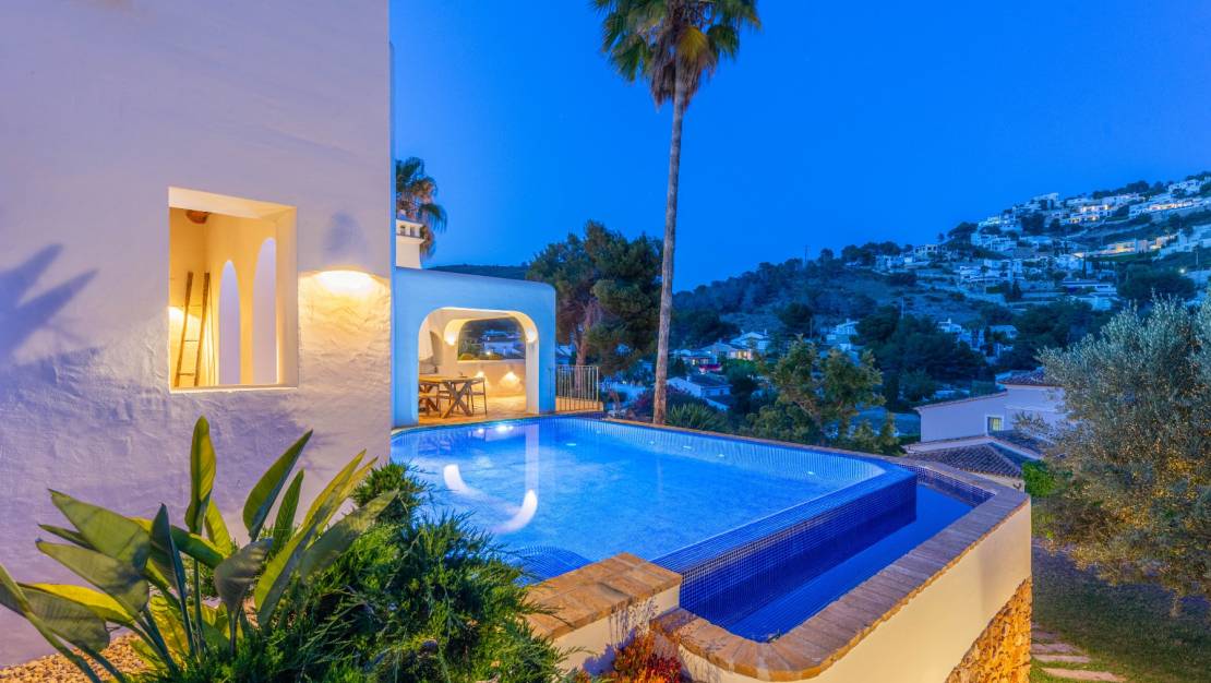 Villa de estilo ibicenco en El Portet Moraira. Esta hermosa villa, construida en 2007 y completamente renovada en 2024, está a la venta. Una casa acogedora y elegante a solo 1 km de la playa de El Portet. Arquitectura blanca, esencia mediterránea y diseño atemporal a tan solo 1 km de la emblemática playa de El Portet. Le presentamos esta villa ibicenca que encarna la elegancia serena del Mediterráneo. Situada en una de las zonas más codiciadas de Moraira, El Portet, esta propiedad ofrece una fusión perfecta entre estética tradicional y confort contemporáneo. Construida originalmente en 2007 y completamente renovada en 2024 con materiales nobles y técnicas de última generación, esta vivienda refleja un estilo de vida relajado y soluciones cómodas. Las líneas limpias, los muros encalados, los techos con vigas vistas y la conexión fluida entre interior y exterior conforman la esencia de la arquitectura ibicenca, reinterpretada con sensibilidad y autenticidad. La propiedad se desarrolla sobre una parcela privada y soleada, a solo 1 km del mar, con una superficie construida distribuida en tres niveles. En la planta principal, un recibidor con aseo de cortesía da paso a un amplio salón abierto a dos porches con vistas parciales al mar, la piscina y el jardín paisajístico. Desde el salón se accede a un gran comedor bañado en luz natural y a la cocina equipada, que se complementa con lavadero independiente. En el nivel inferior, se encuentran dos dormitorios dobles y un baño completo de gran tamaño. Existe la posibilidad de agregar un segundo baño en este nivel. También se ha integrado una bodega climatizada, ideal para los amantes del vino. La planta superior está reservada para la suite principal, con baño privado y una gran terraza con vistas abiertas al mar. Entre sus prestaciones destacan: calefacción por suelo radiante en toda la vivienda, aire acondicionado, sistema de alarma, conexión WiFi, ventanas de doble acristalamiento de nueva instalación, e iluminación arquitectónica tanto en interiores como exteriores. Se vende con mobiliario incluido, cuidadosamente seleccionado para complementar el estilo ibicenco de la villa. En el exterior, un jardín mediterráneo con riego automático envuelve la vivienda, y la piscina se integra de forma armónica en el entorno. Además, dispone de garaje cerrado para dos vehículos y acceso peatonal independiente. Una propiedad que combina ubicación, estilo y calidad en una de las zonas más exclusivas de la Costa Blanca Norte. Lista para entrar a vivir, esta villa ibicenca representa una oportunidad única de adquirir una vivienda con alma y carácter, junto al mar de Moraira.