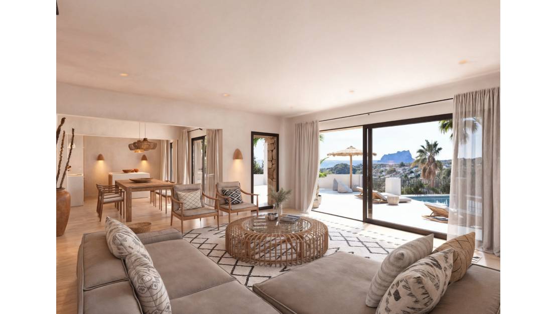 La arquitectura es elegante y moderna, pero los materiales naturales, los colores suaves y las texturas cálidas confieren a la casa un ambiente acogedor y cálido. Los grandes ventanales crean una transición perfecta entre el interior y el exterior, permitiéndole disfrutar de las vistas de su jardín privado, la piscina y el mar en cada momento del día.