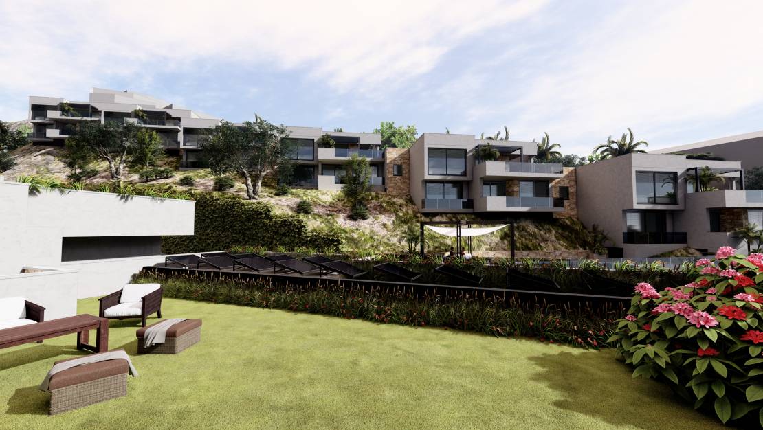 Los exteriores de estas propiedades están cuidadosamente diseñados para ofrecer el máximo disfrute del clima mediterráneo. Cada vivienda cuenta con un jardín privado, perfecto para disfrutar de momentos al aire libre. Las terrazas, amplias y bien orientadas, permiten aprovechar al máximo las vistas al mar. Además, cada propiedad dispone de un solárium, ideal para relajarse bajo el sol. La presencia de una pérgola añade un toque de elegancia y funcionalidad, proporcionando sombra y un espacio adicional para el ocio. La piscina privada es un elemento destacado, ofreciendo un lugar perfecto para refrescarse y disfrutar de la tranquilidad del entorno.