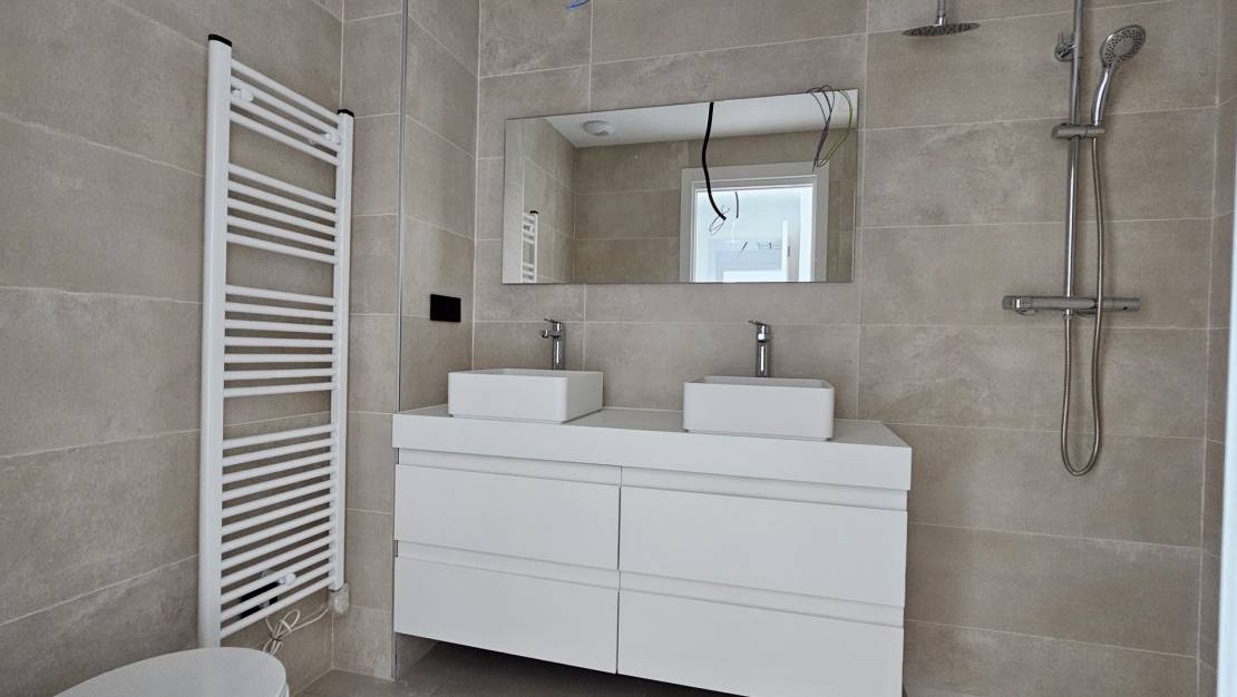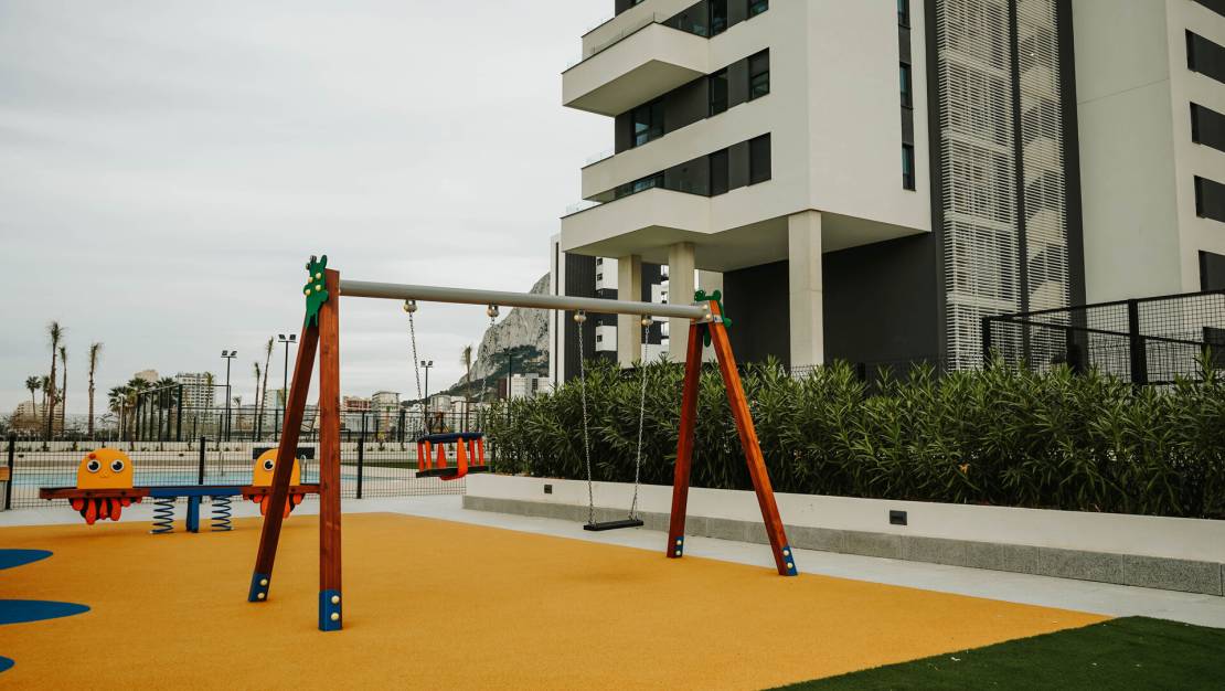 El interior de estos áticos en Calpe está diseñado con un enfoque en la calidad y el confort. Los suelos de gres porcelánico aportan un toque de elegancia y durabilidad. La comodidad está garantizada con la instalación de aire acondicionado y persianas eléctricas, que permiten regular la temperatura y la luz de manera eficiente. Los armarios empotrados ofrecen un almacenamiento óptimo, mientras que los electrodomésticos integrados en la cocina facilitan las tareas diarias. La distribución incluye opciones de dos o tres dormitorios y dos baños, adaptándose a las necesidades de cada familia. Además, el videoportero proporciona seguridad y tranquilidad.