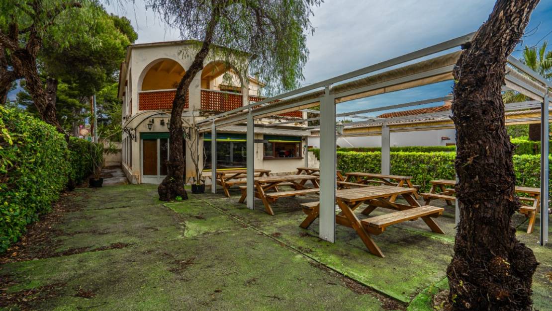 Esta propiedad se encuentra a sólo 5 minutos a pie de la playa de Las Rotas en Denia y se divide en 2 plantas. Actualmente, la planta baja está amueblada como restaurante y la planta superior como zona de estar. La planta superior consta de un salón, una cocina, 2 dormitorios y un amplio baño. Existe la posibilidad de convertir la planta baja en una sala de estar con salón, una cocina, 2 dormitorios y un baño. Además, la casa tiene un gran balcón parcialmente cubierto, un balcón más pequeño, una gran terraza, un trastero, un largo camino de entrada y aparcamiento privado con espacio para 3 coches.