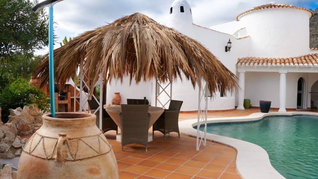 En el exterior, la propiedad ofrece amplias zonas verdes y espacio para disfrutar al aire libre, incluyendo una cocina de verano con un pequeño chiringuito junto a la piscina, ideal para reuniones con amigos o familiares.
