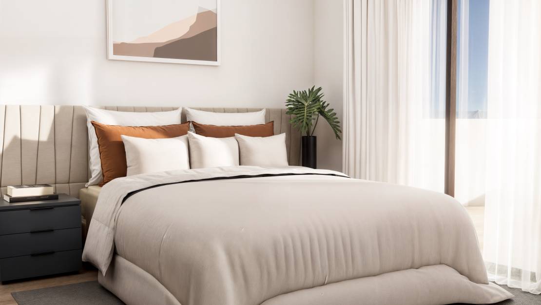 El interior de las viviendas está pensado para ofrecer el máximo confort y funcionalidad. Cada apartamento y ático dispone de dos dormitorios y dos baños, ideales para familias o parejas que buscan espacio y privacidad. Los armarios empotrados proporcionan un almacenamiento eficiente, mientras que el videoportero añade un nivel extra de seguridad y comodidad. Los acabados de calidad y el diseño contemporáneo aseguran que cada espacio sea tanto estético como práctico, adaptándose a las necesidades de los residentes modernos.