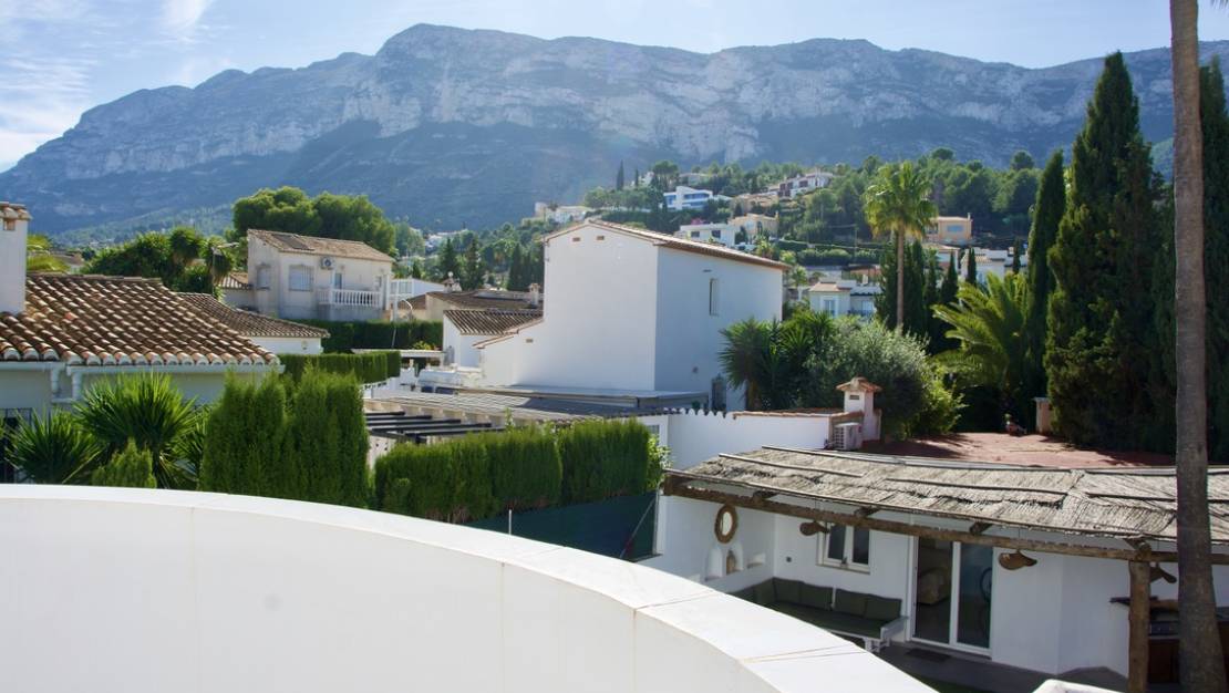 La villa principal cuenta en la planta baja con un amplio salón-comedor de concepto abierto junto a una cocina moderna y dos dormitorios con baño. En la planta superior se encuentra la suite principal, con baño privado, vestidor y una terraza con impresionantes vistas al Montgó.