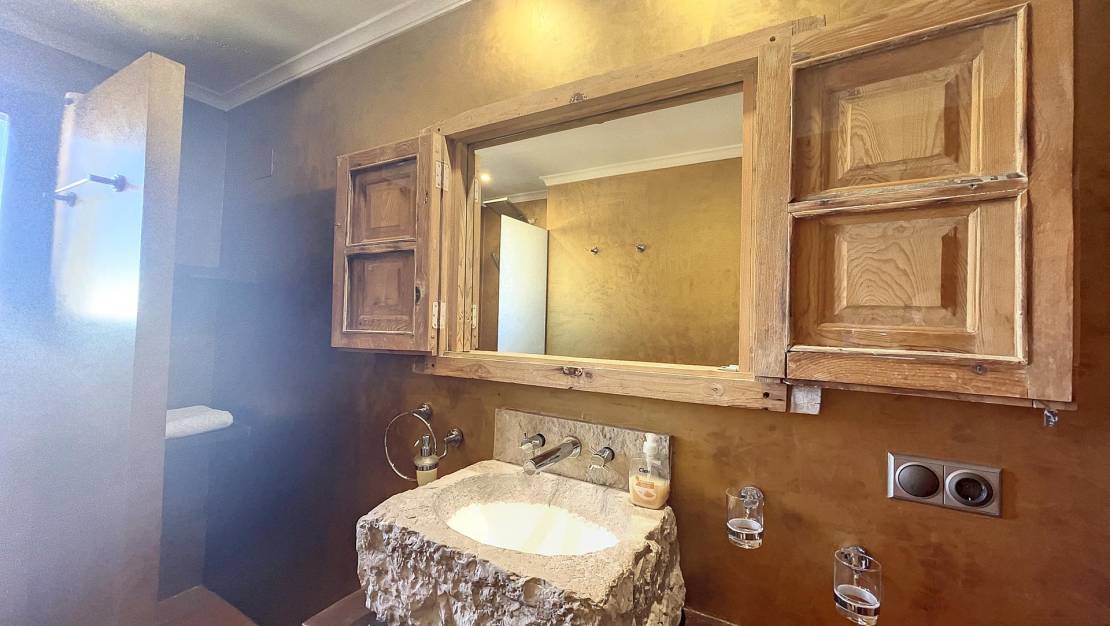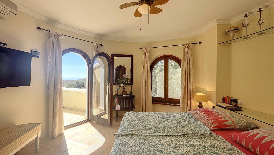 Villa de estilo mediterráneo reformada en primera línea de mar con espectaculares vistas ubicado en la zona residencial Fresnos de la urbanización Cumbre del Sol, Benitachell (entre Jávea y Moraira).  La villa consta de una superficie total construida de 455 M2 (260 M2 vivienda, 160 m2 terrazas y 35 M2 de garaje) en una parcela de 889 M2. La villa dispone de cuatro dormitorios dobles, tres cuartos de baño, un estudio, un vestidor, salón comedor, salón independiente, dos cocinas y varias terrazas cubiertas y descubiertas, así como un garaje y trasteros. La villa esta construida en dos plantas, en la planta baja disponemos de dos dormitorios dobles, cocina, salón comedor con chimenea y la salida a la terraza cubierta con acceso a la terraza exterior con la piscina privada.   Mediante una escalera interior subimos a la segunda planta en la cual se encuentra el dormitorio principal con cuarto de baño y un enorme vestidor, así como la salida a una terraza exterior y el acceso al apartamento de invitados que también es accesible mediante una escalera independiente exterior.   El apartamento de invitados consta de un dormitorio doble, cuarto baño y salón con cocina desde el cual podemos acceder a otra terraza exterior y acceder mediante ella al estudio que también es accesible desde la terraza del dormitorio principal.  Toda la villa esta rodeada de un hermoso jardín y la parcela linda con una zona verde que da sobre los acantilados de Cumbre del Sol.  La zona Residencial Fresnos es una promoción de villas ubicada en la urbanización cumbre del sol en Benitachell (alicante). La mayoría de las viviendas están orientadas al sur o sureste y en algunas de ellas disponemos de vistas al mar.  Las zonas comunes constan de una gran piscina tipo laguna, terrazas, club social y jardín. El Residencial Fresnos linda con el parque natural de la Granadella (Jávea) y la zona deportiva con pistas de Pádel, tenis y un chiringuito Distancias a servicios: A menos de 500 metros se encuentra el centro comercial Adelfas con el supermercado Pepe la sal, peluquería, agencia de servicios de mantenimiento y alquileres, bar cafetería, el restaurante la cumbre y la farmacia. De 1 a 2 Km; el acceso a la playa Morach y la cala de los tiestos, La escuela internacional Lady Elisabeth y la hípica. De 4 a 6 Km; Supermercado Mercadona y el supermercado Mas y Mas. De 9 a 12Km; La playa del arenal de Jávea, la playa de Moraira y La playa del Portet de Moraira.