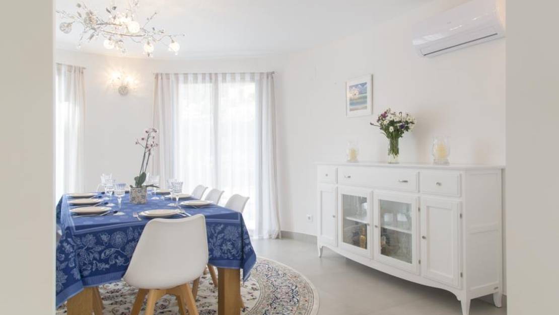 Bonita villa totalmente reformada ubicada en la zona residencial Encinas de la urbanización Cumbre del Sol en el municipio de Benitachell entre Jávea y Moraira.  La villa esta ubicada en una ubicación privilegiada a un minuto en coche del centro comercial Adelfas (supermercado Pepe la Sal, peluquería, restaurantes, etc.) y a cuatro minutos del colegio internacional Lady Elisabeth. Al estar situado en un callejón sin salida no tiene absolutamente nada de tráfico por lo que es un lugar idealmente seguro para los niños, así como fuera del sitio para los curiosos.  Esta villa es de visita obligada ya que las fotos no revelan toda su belleza.  La villa cuenta con una sala de televisión que puede utilizarse como dormitorio o sala de estudio, lo que la convierte en una casa de 4 dormitorios muy bien cuidada de unos 150m2 y unos 150m2 de terrazas y una parcela de terreno de unos 820m2.   A continuación encontrará algunos detalles de la casa que no se revelan en las fotos:  - Calefacción por suelo radiante en la planta baja y el segundo piso, excepto en las escaleras y el dormitorio 4.  - Calefacción y refrigeración central inteligente de la planta superior con cada dormitorio con su propio termostato y control de temperatura (a través del teléfono y del PC).  - Cada habitación tiene acceso al exterior con puertas de cristal de suelo a techo que aportan toda la luz natural que desee.  - Todos los dormitorios superiores tienen persianas automáticas de control inteligente (a través de teléfono o PC)  - Control inteligente total por cámara del exterior de la casa (a través de teléfono o PC)  - Todas las luces exteriores y la luz de la piscina son de control inteligente (a través del teléfono o PC)  - La puerta del garaje y la del camino de entrada también se controlan de forma inteligente (a través del teléfono y del PC)  - Calentador de la piscina, y la luz LED.  - Agua, caldera de la calefacción y la encimera de la cocina son de gas y un gran tanque está instalado en el punto más alejado del lote haciendo el mantenimiento de la casa muy rentable.  - Garaje extra grande con muchos estantes de almacenamiento.  - Todos los armarios están hechos a medida con organizadores, cajones y estantes.  - Comedor cabe un ajuste de 12 sillas con facilidad.  - Todas las ventanas son de aluminio de doble acristalamiento con sistema de inclinación y apertura.  - Sistema de purificación de agua con filtración por ósmosis inversa.  Paisajismo:  Este terreno está meticulosamente cuidado de delante a atrás y de lado a lado.  La terraza superior está rodeada de vegetación y muros de contención de piedra natural hechos con el famoso cincelado a mano, construidos por artesanos locales. Cada terraza está llena de un conjunto de árboles frutales bien establecidos (melocotón, naranja, mandarina, lima, limón, jub jub, granada, níspero, albaricoque y algunos nuevos como caqui y aguacate) o de jazmín y/o rosas y mimosas.  La terraza inferior tiene piscina y una pérgola con acceso al camino de entrada. La Pérgola está envuelta con glicinas y buganvillas. En el lado de la calle se ha plantado un seto de adelfas multicolores para crear privacidad durante todo el año y belleza durante la época de floración en verano.  Toda la parcela está cuidada con un riego automático inteligente que regula su riego en función de las condiciones meteorológicas y las previsiones y que también se controla por teléfono o PC.  Descubre la Exclusiva Zona Residencial Encinas en Cumbre del Sol La Zona Residencial Encinas es una prestigiosa promoción de villas que consta de 140 parcelas de entre 750 m² y 1200 m², situada en la exclusiva urbanización Cumbre del Sol en Benitachell (Alicante). Vistas de Ensueño y Orientación Privilegiada La mayoría de las parcelas ofrecen impresionantes vistas al mar, al Cabo de la Nao e incluso, en los días despejados, se puede divisar en el horizonte la mágica isla de Ibiza. La orientación de las parcelas varía entre Este, Sureste y Sur, lo que garantiza una excelente iluminación natural durante todo el día y unas puestas de sol inolvidables. Ubicación y Entorno La Zona Residencial Encinas se encuentra estratégicamente ubicada dentro de la urbanización Cumbre del Sol, limitando con las prestigiosas zonas residenciales de Adelfas, Camelias y Dalias. Este enclave ofrece una combinación perfecta de tranquilidad y proximidad a todos los servicios necesarios para un estilo de vida cómodo y sofisticado. Distancias a Servicios Clave Entre 1 y 3 km: Dreamsea Mediterranean Camp con bar y restauranteAcceso a las playas: Cala Moraig, Cala de los Tiestos y Cala LlebeigEscuela Internacional Lady ElizabethCentro Comercial Encinas con:Supermercado Pepe la SalPeluqueríaAgencia de servicios de mantenimiento y alquileresBar cafeteríaRestaurante La CumbreFarmaciaCentro deportivo con pistas de pádel, tenis y barSupermercado Mas y MasCentro urbano de BenitachellHípicaA 6 km: Supermercado MercadonaCampo de golf de JáveaDe 7 a 8 km: Centro urbano y playa del Portet de MorairaA 10 km: Playa del Arenal de JáveaTu Nueva Vida en Cumbre del Sol Empieza Aquí Si buscas un entorno exclusivo, con vistas espectaculares, excelente orientación y todos los servicios a tu alcance, la Zona Residencial Encinas es el lugar perfecto para construir la casa de tus sueños o disfrutar de una villa de lujo. ¡Contáctanos hoy mismo para más información y descubre todo lo que la Zona Residencial Encinas tiene para ofrecerte!