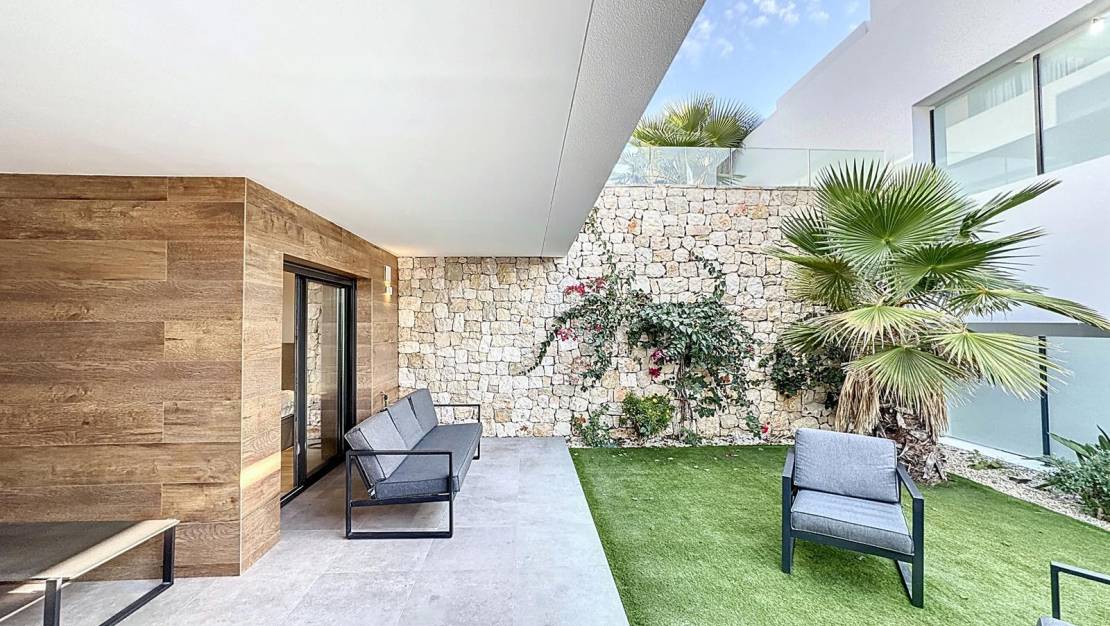 Apartamento moderno con jardín privado en venta en Montecala Gardens, Cumbre del Sol Descubre este impresionante apartamento de estilo moderno ubicado en la prestigiosa promoción de viviendas Montecala Gardens, en la urbanización Cumbre del Sol, situada estratégicamente entre Jávea y Moraira, en el municipio de Benitachell. Con una superficie total construida de 143 m², este apartamento ofrece amplios espacios para disfrutar: 91 m² de vivienda, una acogedora terraza cubierta de 23 m², y 29 m² de zonas comunes, complementados por un exclusivo jardín privado de casi 36 m², ideal para relajarse al aire libre. El interior de la vivienda está diseñado para maximizar el confort y la funcionalidad. Dispone de: Este apartamento está equipado con prestaciones de lujo como: Si buscas una vivienda moderna, cómoda y situada en un entorno privilegiado, esta es tu oportunidad. Contacta con nosotros hoy mismo para más información o para programar una visita. ¡Haz de este apartamento tu nuevo hogar en la Costa Blanca! Montecala Gardens: Un Complejo Moderno en el Corazón de Cumbre del Sol Montecala Gardens es un exclusivo complejo de apartamentos de estilo moderno situado dentro de la prestigiosa promoción de Pueblo Montecala, ubicada en la zona residencial Palmeras de la urbanización Cumbre del Sol, en Benitachell (Alicante). Diseño y Entorno Únicos La mayoría de los apartamentos de Pueblo Montecala están orientados hacia el sur, ofreciendo una excelente luminosidad. Además, el complejo colinda con la zona de protección especial del Portet de Moraira y la cala Llebeig, un entorno natural que combina tranquilidad y belleza. Zonas Comunes Exclusivas Montecala Gardens cuenta con una amplia variedad de espacios comunes diseñados para disfrutar y relajarse: Piscina tipo laguna, ideal para los días soleados.Piscina más pequeña, perfecta para su uso durante todo el año.Espaciosos soláriums y terrazas para disfrutar del buen clima.Club social y jardines para socializar o relajarse.Proximidad a Servicios Clave La ubicación estratégica de Pueblo Montecala te sitúa cerca de una amplia gama de servicios y lugares de interés: 700 metros: Acceso a la pintoresca cala Llebeig.2 a 3 km:Playa Morach y la cala de los Tiestos.Centro comercial Adelfas con supermercado Pepe La Sal, peluquería, agencia de servicios de mantenimiento y alquileres, cafetería, restaurante La Cumbre y farmacia.4 a 5 km:Supermercado Mercadona.La prestigiosa Escuela Internacional Lady Elisabeth.Hípica y centro deportivo con pistas de pádel, tenis y bar.6 a 7 km:Supermercado Mas y Mas.El centro urbano y las playas de Moraira y El Portet.13 km: La famosa playa del Arenal en Jávea.El Hogar Perfecto en la Costa Blanca Montecala Gardens es el lugar ideal para quienes buscan un estilo de vida moderno, rodeado de naturaleza y con todas las comodidades al alcance de la mano. ¡No pierdas esta oportunidad! Contacta con nosotros hoy mismo y descubre todo lo que Montecala Gardens puede ofrecerte.