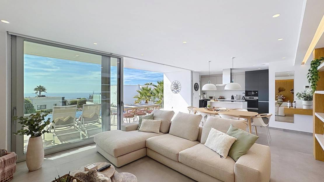 Villa contemporánea en venta en la zona residencial Magnolias, Cumbre del SolUna vivienda moderna y funcional en la Costa Blanca NorteEsta villa de estilo contemporáneo está ubicada en la prestigiosa zona residencial Magnolias, dentro de la urbanización Cumbre del Sol, entre Jávea y Moraira, en el encantador municipio de Benitachell. Un enclave privilegiado donde la tranquilidad, las vistas y el diseño se unen para ofrecer una calidad de vida inmejorable. Características principales de la villaSuperficie total construida: 244 m²139 m² de vivienda77 m² de terraza28 m² de aparcamiento cubiertoParcela: 830 m²Distribución en una sola planta3 dormitorios dobles2 cuartos de baño completosSalón-comedor amplio con cocina de concepto abiertoLavadero y cuarto técnicoDesde el dormitorio principal y el salón se accede directamente a la terraza exterior, donde destaca la piscina desbordante con unas vistas despejadas que invitan al relax y al disfrute del clima mediterráneo. Construcción reciente y equipamiento de alta eficienciaConstruida en 2021, esta villa se encuentra en excelente estado y dispone de instalaciones de última generación: Calefacción por suelo radianteAire acondicionado por conductos con sistema de aerotermia, que también abastece el agua caliente sanitariaSistema de ventilación mecánica con recuperador de calor e intercambiador de flujoJardín mediterráneo consolidado, que rodea la vivienda y aporta un entorno natural y acogedorTodo ello convierte a esta propiedad en una opción eficiente, confortable y lista para entrar a vivir. Un estilo de vida exclusivo en Cumbre del SolVivir en esta villa significa disfrutar de una residencia moderna, luminosa y bien conectada, perfecta tanto como vivienda habitual como segunda residencia. Su ubicación en la zona residencial Magnolias asegura tranquilidad y, al mismo tiempo, cercanía a todos los servicios esenciales, playas y localidades costeras con encanto. Resumen de la zona residencial MagnoliasLa zona residencial Magnolias se encuentra dentro de la urbanización Cumbre del Sol, en Benitachell, muy próxima a las zonas de Lirios y Jazmines. Se caracteriza por ofrecer parcelas amplias y privadas, con orientación ideal para aprovechar al máximo la luz natural y el clima mediterráneo. Rodeada de naturaleza y a pocos minutos en coche de calas exclusivas como Moraig, Llebeig o los Tiestos, Magnolias es un lugar perfecto para quienes buscan un entorno tranquilo sin renunciar a la cercanía de Jávea, Moraira y todos sus servicios. ContáctenosSi busca una villa contemporánea lista para disfrutar en Cumbre del Sol, no dude en ponerse en contacto con nosotros. Estaremos encantados de ofrecerle más información y organizar una visita personalizada a esta propiedad única.