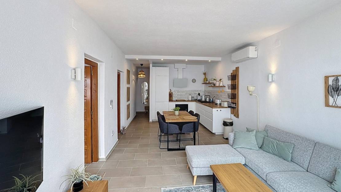 Apartamento reformado con espectaculares vistas al mar en Pueblo Panorama – Cumbre del SolUna vivienda que combina comodidad y exclusividadPresentamos este apartamento reformado ubicado en la prestigiosa zona de Pueblo Panorama, dentro de la urbanización Cumbre del Sol, entre Jávea y Moraira en el municipio de Benitachell. La vivienda cuenta con una superficie total construida de 89 m², de los cuales 69 m² corresponden a la vivienda y 20 m² a la terraza, un espacio perfecto para disfrutar de las incomparables vistas al mar Mediterráneo. Distribución y características principalesEste apartamento ha sido diseñado para ofrecer confort y practicidad en cada rincón: Dos dormitorios dobles con armarios empotrados.Amplio cuarto de baño.Salón comedor con cocina de concepto abierto, perfectamente integrado con la zona de terraza.Tres armarios tipo trastero en la entrada, aportando gran capacidad de almacenamiento.Terraza privada con vistas panorámicas, el lugar ideal para relajarse y contemplar el mar.Aire acondicionado frío-calor en todas las estancias, garantizando confort durante todo el año.Una vivienda lista para entrar a vivir, perfecta tanto como residencia habitual, segunda vivienda de vacaciones o inversión. Pueblo Panorama – un entorno privilegiadoLos apartamentos de Pueblo Panorama destacan por su orientación al sureste, lo que asegura luminosidad durante todo el día y unas vistas únicas al Mediterráneo. Los residentes disfrutan de 8 piscinas comunitarias distribuidas en diferentes áreas, cada una con terrazas soleadas para descansar y disfrutar del clima de la Costa Blanca. Además, la ubicación es inmejorable: 1 km: Colegio internacional Lady Elisabeth.2 a 3 km: Playa del Moraig y Cala de los Tiestos, así como el Centro Comercial Adelfas con supermercado Pepe La Sal, restaurante La Cumbre, farmacia y más.4 a 5 km: Supermercados Mercadona y Mas y Mas, además del centro urbano de Benitachell.6 a 7 km: El encantador Portet de Moraira, con sus playas y ambiente mediterráneo.11 km: La animada playa del Arenal en Jávea.Vive el Mediterráneo desde tu terrazaEste apartamento en Pueblo Panorama – Cumbre del Sol es la oportunidad de disfrutar de un estilo de vida único: tranquilidad, naturaleza, servicios cercanos y unas vistas que enamoran. ¿Quieres saber más?Contáctanos hoy mismo y descubre cómo este hogar puede convertirse en tu próximo proyecto de vida.