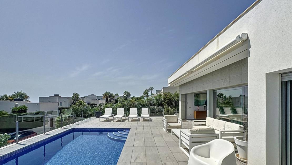 Villa moderna con vistas al mar en Residencial Lirios, Cumbre del SolUna vivienda exclusiva entre Jávea y MorairaLe presentamos esta villa contemporánea con piscina privada y espectaculares vistas al mar, situada en la prestigiosa zona residencial Lirios dentro de la urbanización Cumbre del Sol en Benitachell. Una ubicación privilegiada que combina la tranquilidad del Mediterráneo con la cercanía a todos los servicios. Características principales de la villaSuperficie construida total: 229 m²Parcela: 802 m²Distribución en dos plantasDormitorios: 4 dobles con armarios empotradosBaños: 3 completosSalón-comedor amplio y luminoso con cocina americana integradaTerraza principal de 70 m² con piscina privadaEspacios adicionales: despensa-lavadero y sala de máquinasConstruida en 2020, la vivienda se encuentra en excelente estado de conservación, equipada con calefacción por suelo radiante y aire acondicionado por conductos en la planta principal, además de sistemas Split en la planta baja para máximo confort durante todo el año. El exterior está rodeado de un jardín mediterráneo cuidadosamente diseñado, con varios rincones donde relajarse y disfrutar de las impresionantes vistas al mar. Entorno residencial Lirios en Cumbre del SolResidencial Lirios es una de las zonas más demandadas de Cumbre del Sol, un enclave que destaca por su exclusividad y las impresionantes panorámicas que ofrecen sus parcelas, muchas orientadas al este y sureste para disfrutar de los amaneceres mediterráneos. En sus alrededores encontrará todo lo necesario para el día a día y el ocio: A 1-2 km: Playa del Moraig, Cala de los Tiestos y Cala Llebeig, además del Dreamsea Mediterranean Camp con bar y restaurante.A 2-3 km: Centro Comercial Adelfas, supermercado Pepe La Sal, restaurante La Cumbre, farmacia, centro deportivo, hípica y la prestigiosa Lady Elizabeth School.A 5-7 km: centro urbano de Benitachell, la idílica playa del Portet en Moraira y el campo de golf de Jávea.A 12 km: la famosa Playa del Arenal de Jávea con su paseo marítimo, restaurantes y actividades de ocio.Un lugar donde el lujo, la naturaleza y la comodidad se encuentran, ideal tanto para residencia permanente como para segunda vivienda de alto nivel. ¿Quiere saber más?Esta villa en Residencial Lirios – Cumbre del Sol es una oportunidad única de vivir en la Costa Blanca Norte en un entorno privilegiado, rodeado de mar, naturaleza y servicios exclusivos. Contáctenos hoy mismo para organizar una visita y descubrir personalmente todo lo que esta vivienda puede ofrecerle.