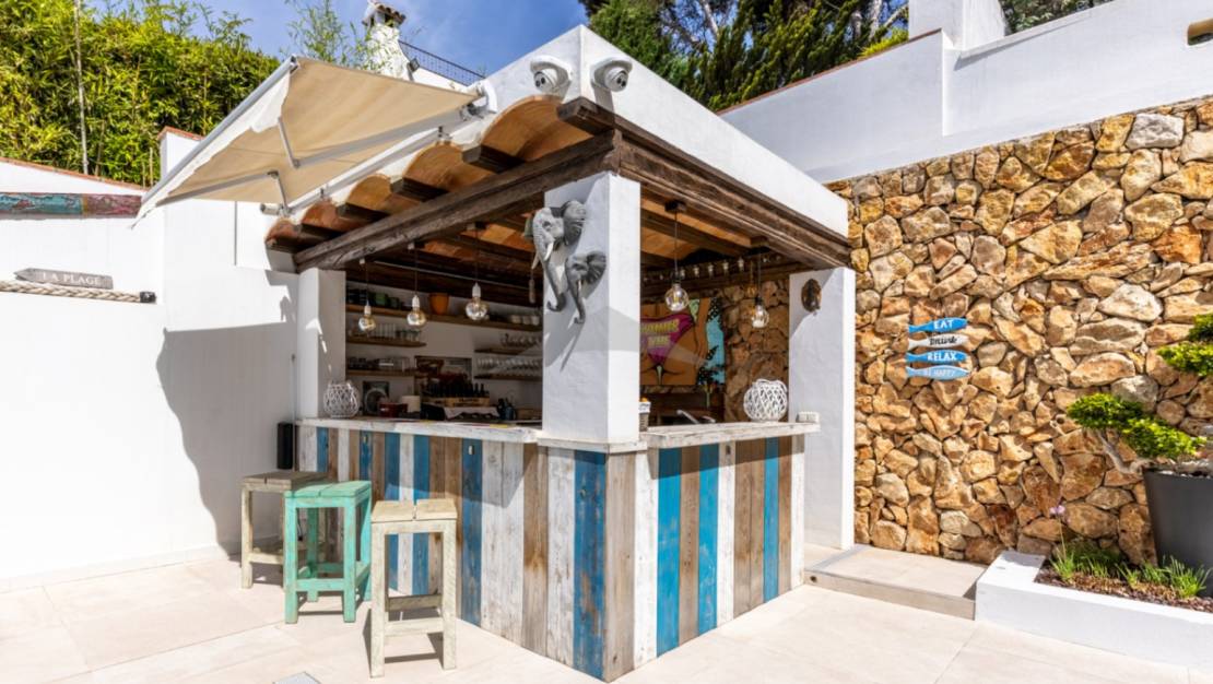 La villa ha sido diseñada con grandes ventanas de vidrio, lo que te brinda una casa con mucha luz natural y te permite disfrutar de las hermosas vistas sobre el mar Mediterráneo. La villa en primera línea en venta en Moraira está lista para habitar y situada en una ubicación perfecta con una exposición al sur. La casa está diseñada para disfrutar del aire libre español, tiene una gran terraza, una espaciosa piscina desde la cual puedes disfrutar de vistas maravillosas, cuenta con un bar/cocina exterior y una habitación adicional con un baño y ducha y almacenamiento. Una gran ventaja es que tiene un garaje muy grande debajo de la casa donde se pueden aparcar hasta dos coches y hay un espacio de almacenamiento extra.