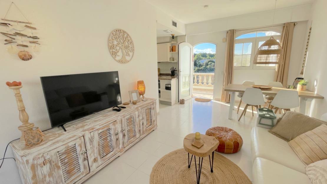 Este estupendo apartamento en última planta ofrece una combinación ideal de confort, privacidad y estilo de vida mediterráneo. Situado en la deseable comunidad de Las Fuentes, la propiedad disfruta de un entorno tranquilo a poca distancia a pie de los servicios locales y a un corto trayecto en coche de las hermosas playas de Moraira.