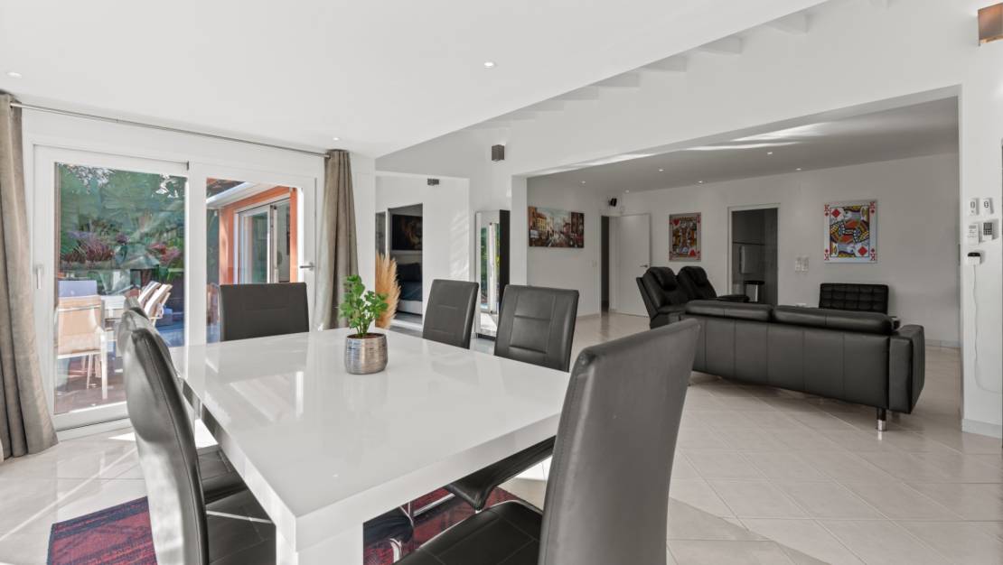 En una tranquila y verde zona del barrio de Benimeit, en Moraira, se encuentra esta preciosa villa modernizada, una opción ideal para cualquiera que busque una villa en Moraira con privacidad, comodidad y la auténtica vida mediterránea al aire libre. Gracias a su reciente renovación, sus elegantes espacios exteriores y su suite independiente para invitados, se trata de una vivienda muy atractiva situada a unos 2 km del animado centro de Moraira.