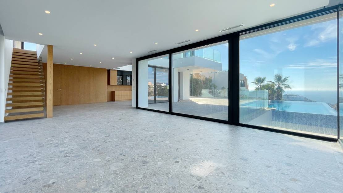 Vistas panorámicas al mar, al valle y al peñón de Ifach.Piscina infinita con vistas al mar.Jardín mediterráneo de bajo mantenimiento.Calefacción por suelo radiante y aire acondicionado integrado.Grandes ventanales para disfrutar al máximo de las vistas.Planta baja multifuncional.