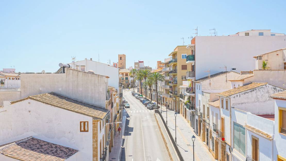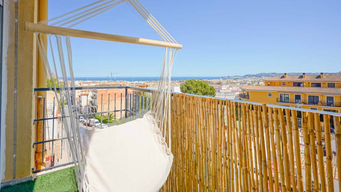 Este amplio piso de 178 m2 está situado en la cuarta planta de un pequeño edificio a las afueras del centro de Jávea. Gracias a su céntrica ubicación, podrá llegar a pie a todas las instalaciones del casco antiguo, así como a la playa y al puerto. Esta propiedad consta de dos pisos unidos por lo que será el único ocupante en el cuarto piso. Se accede al piso por un amplio salón-comedor. A través de las ventanas correderas, hay acceso a un balcón orientado al sur. Al lado se encuentra la cocina con isla. Desde el salón, un pasillo conduce a un dormitorio doble con un segundo balcón, un espacio de oficina donde varias ventanas proporcionan mucha luz natural y un pequeño balcón orientado al oeste, un amplio cuarto de baño (actualmente en renovación), un dormitorio y un lavadero. Al otro lado del salón hay un segundo pasillo con un cuarto de baño y dos dormitorios dobles. Tanto desde el salón como desde los dos dormitorios se puede disfrutar de vistas a la bahía de Jávea. Una planta más arriba hay una azotea comunitaria muy grande con vistas panorámicas de 360° al mar, al Montgó y al pueblo.