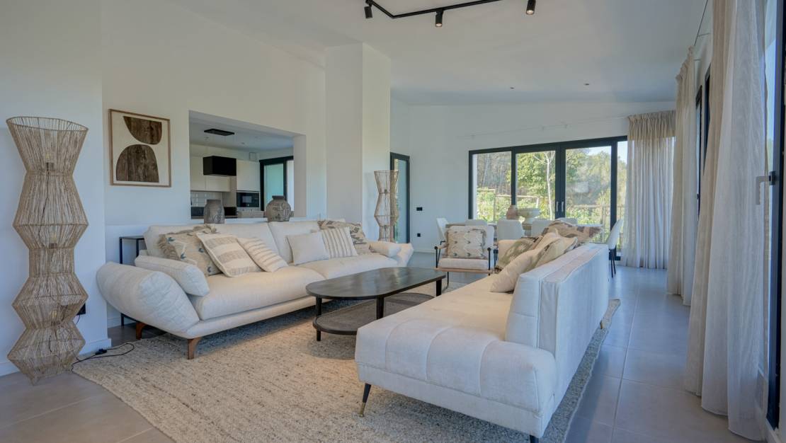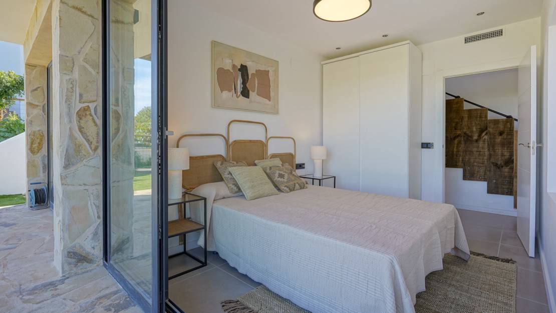 Exclusiva Villa de Obra Nueva con vistas al mar en venta en Puerta Fenicia, Jávea. Descubra esta hermosa y moderna villa, recientemente terminada, situada en una ubicación ideal a poca distancia tanto del encantador centro histórico de Jávea como de la hermosa playa de arena. Disfrute de vistas panorámicas sobre el majestuoso Montgó, extensos campos de naranjos, el emblemático Cabo de San Antonio y el azul del mar Mediterráneo. Distribuida en dos plantas, esta villa ofrece un equilibrio perfecto entre lujo y funcionalidad. La planta superior alberga un generoso salón-comedor, donde los grandes ventanales no sólo proporcionan abundante luz natural, sino que también ofrecen amplias vistas de los alrededores. La cocina semiabierta está equipada con materiales de primera calidad, incluida una amplia isla de cocina. También hay un práctico lavadero con acceso directo desde la cocina y un aseo de invitados. Las ventanas correderas de la cocina dan acceso a una amplia terraza parcialmente cubierta y a un bonito jardín, el lugar ideal para disfrutar del sol y las vistas. En la planta baja hay tres elegantes dormitorios, cada uno con su propio cuarto de baño de lujo. Todos los dormitorios tienen acceso directo a la terraza y a la piscina. La villa está equipada con comodidades modernas, como calefacción eléctrica por suelo radiante y aire acondicionado, que garantizan un confort óptimo durante todo el año. Materiales naturales como la piedra natural y la madera se han combinado en la construcción de esta villa para un resultado elegante y atemporal. Una oportunidad única de vivir en una de las zonas más cotizadas de Jávea, donde el lujo y el confort van de la mano con la belleza de la naturaleza.
