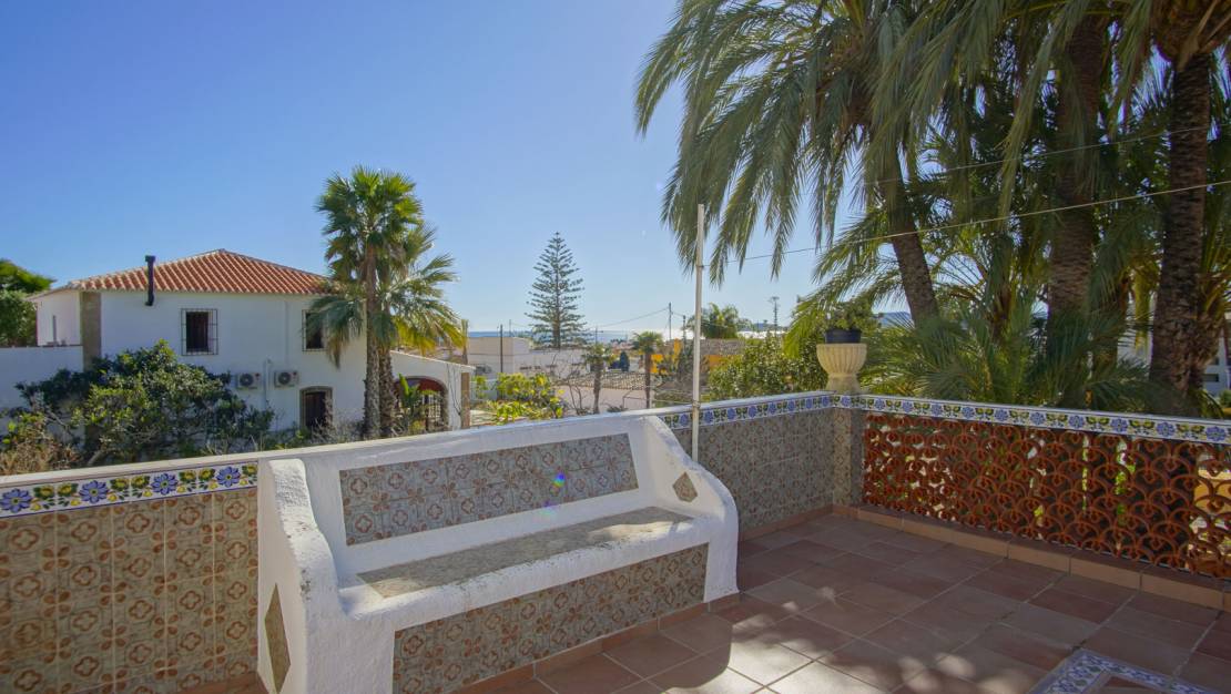 Esta villa tradicional se encuentra a 5 minutos a pie tanto del puerto como del centro de Jávea. La villa está situada en una parcela de 699 m2 y dividida en dos plantas con una superficie total construida de 214 m2. Cada planta consta de una vivienda independiente conectada internamente por escaleras. La planta baja consta de una amplia terraza cubierta, un salón, una cocina, tres dormitorios, un baño y una habitación extra que puede ser utilizada como trastero o un cuarto dormitorio. La planta superior consta de un amplio salón con acceso a una gran terraza desde donde se puede ver el mar. Esta planta consta además de una cocina, tres dormitorios y un baño. La villa también cuenta con una amplia terraza en la azotea con vistas al Montgó, Cabo de San Antonio y el mar. También hay un garaje con aparcamiento para un coche, un baño exterior, un camino de entrada con espacio para aparcar y un de jardín llano. Tanto la playa y el puerto, así como servicios como supermercados, escuelas, restaurantes, farmacias, polideportivo, etc están a poca distancia a pie. ¡Esta villa es ideal para aquellos que buscan un proyecto de renovación en una ubicación privilegiada!