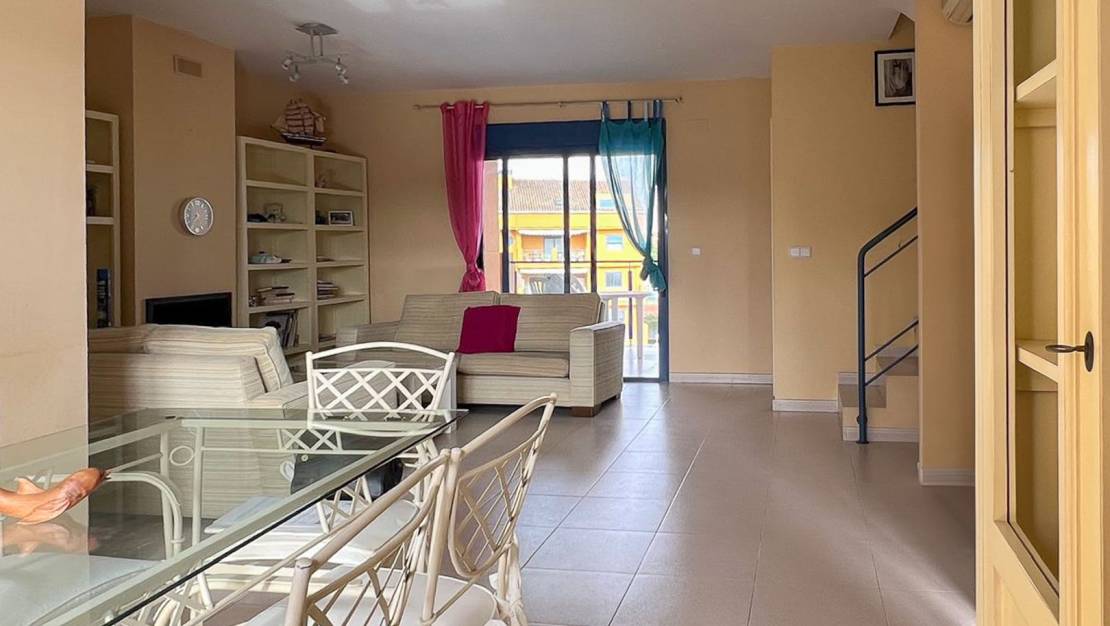 Amplio y luminoso dúplex ubicado al comienzo de la zona de Las Marinas, a tan solo 500 metros de la playa y muy cerca del centro de Dénia. Una ubicación privilegiada, rodeada de todos los servicios: supermercado, hospital, polideportivo, Vía Verde, bares, restaurantes y zonas de ocio. La vivienda, situada en una cuarta planta con ascensor, cuenta con 114 m² construidos (94 m² útiles) y se distribuye en dos plantas. Dispone de 4 habitaciones, 3 baños completos, una terraza con vistas parciales al mar, además de plaza de garaje y trastero incluidos en el precio. Se encuentra en buen estado, con armarios empotrados, aire acondicionado, orientación norte-sur y una excelente ventilación natural. Construido en el año 2002, el edificio dispone de acceso exterior adaptado para personas con movilidad reducida. La urbanización ofrece piscina comunitaria, amplias zonas ajardinadas y un entorno tranquilo para disfrutar en familia o como segunda residencia cerca del mar. Una excelente oportunidad para vivir o invertir en una de las zonas más demandadas de Dénia. ¡Visítalo!
