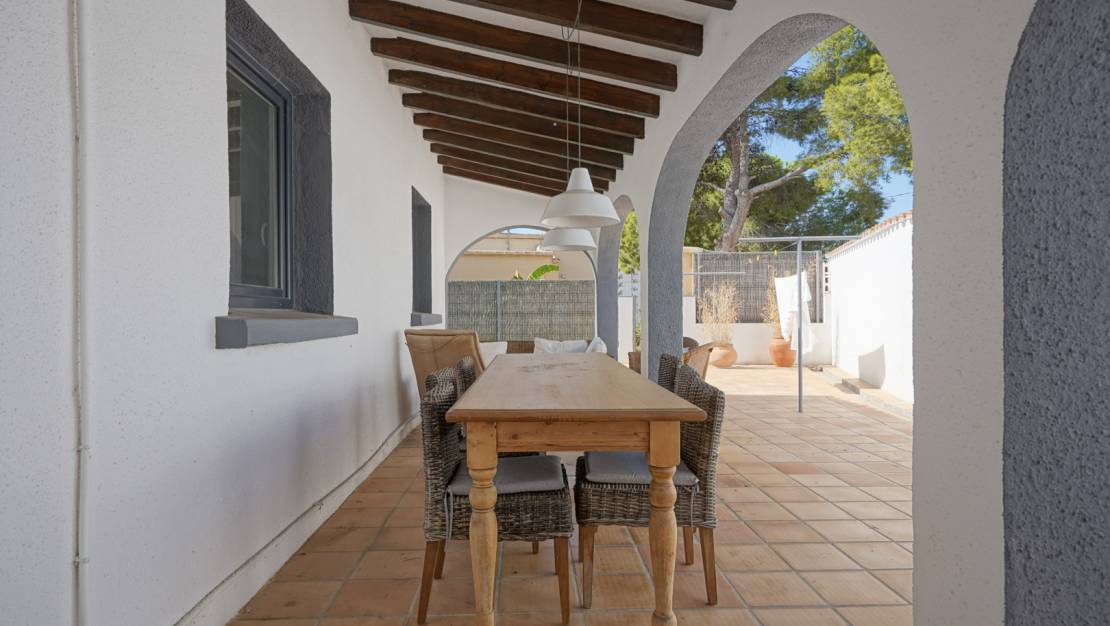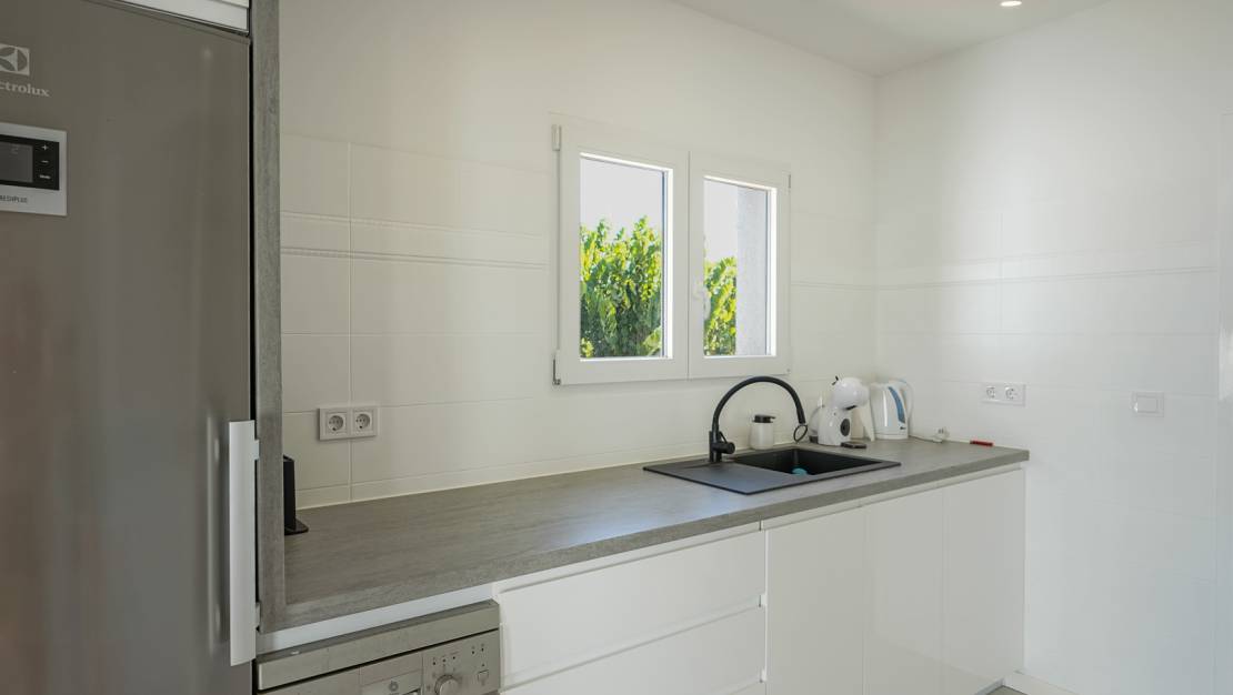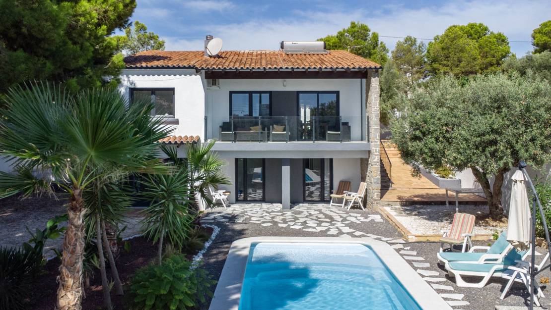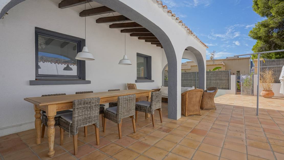 Villa renovada con casa de invitados a 500 m de la playa. Esta villa de 5 dormitorios, recientemente renovada, se encuentra en una tranquila urbanización, a solo 500 metros de la playa de arena de Calpe y a 10 minutos a pie del centro. La planta superior cuenta con un moderno salón-comedor con chimenea, una cocina totalmente equipada, dos amplios dormitorios, un vestidor y un lujoso cuarto de baño con ducha doble y bañera. Desde el salón se accede a una gran terraza orientada al sur con magníficas vistas de Calpe y el Peñón de Ifach. La cocina da a una terraza cubierta, ideal para cenar al aire libre durante todo el año. La planta baja es una casa de invitados totalmente independiente con salón, cocina abierta, tres dormitorios y un cuarto de baño. Perfecta para la familia, los amigos o como posibilidad de alquiler. La casa de invitados está conectada internamente con la vivienda y es accesible a través de una entrada privada. Dos de los tres dormitorios tienen acceso directo a la terraza de la piscina. La villa también cuenta con un garaje, actualmente habilitado como cocina adicional y trastero. Además, la vivienda está equipada con aire acondicionado, doble acristalamiento (Climalit), calentador de agua solar y sauna. En el bonito jardín mediterráneo, con palmeras y olivos, hay varias terrazas, tanto soleadas como sombreadas, y una amplia piscina con zona para tomar el sol. Gracias a su orientación sur, aquí se puede disfrutar del sol durante todo el año. La villa se vende amueblada y lista para entrar a vivir, tanto para uso propio como para alquilar (se debe solicitar la licencia de alquiler). La ubicación es ideal, ya sea como inversión, residencia vacacional o residencia permanente. ¡Solicite su visita ahora!