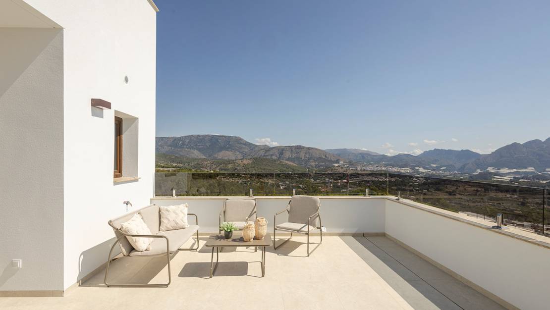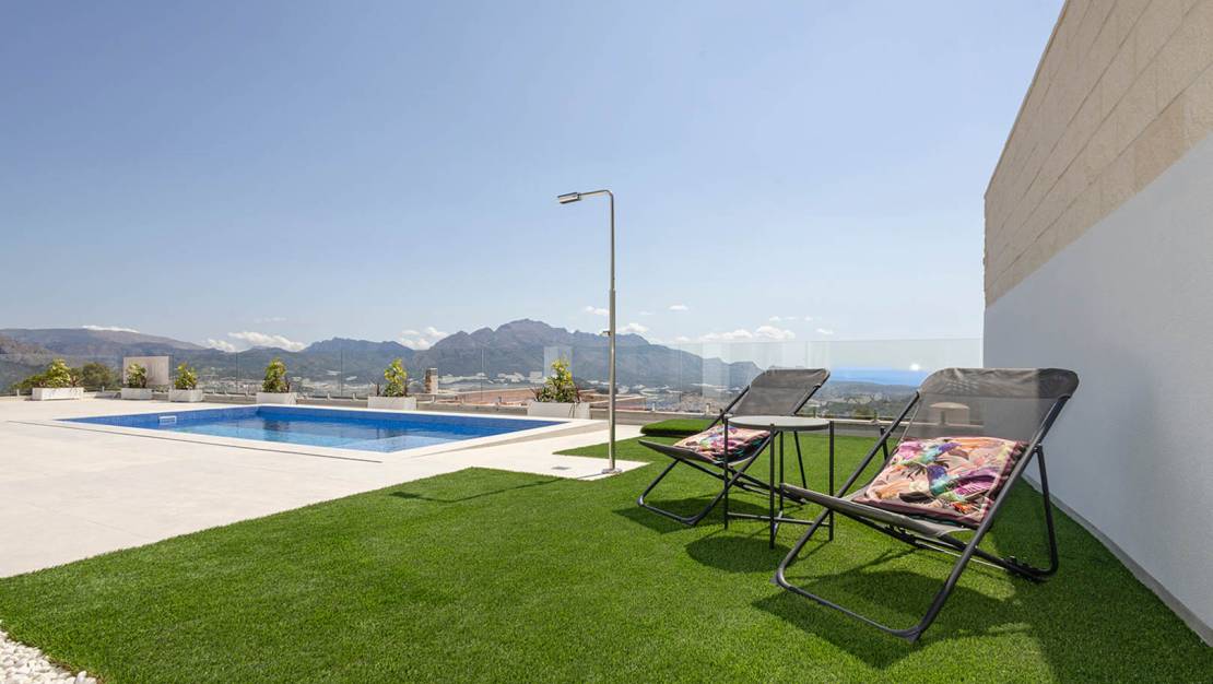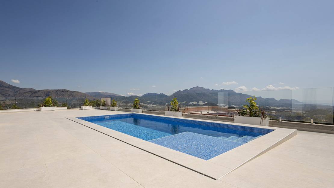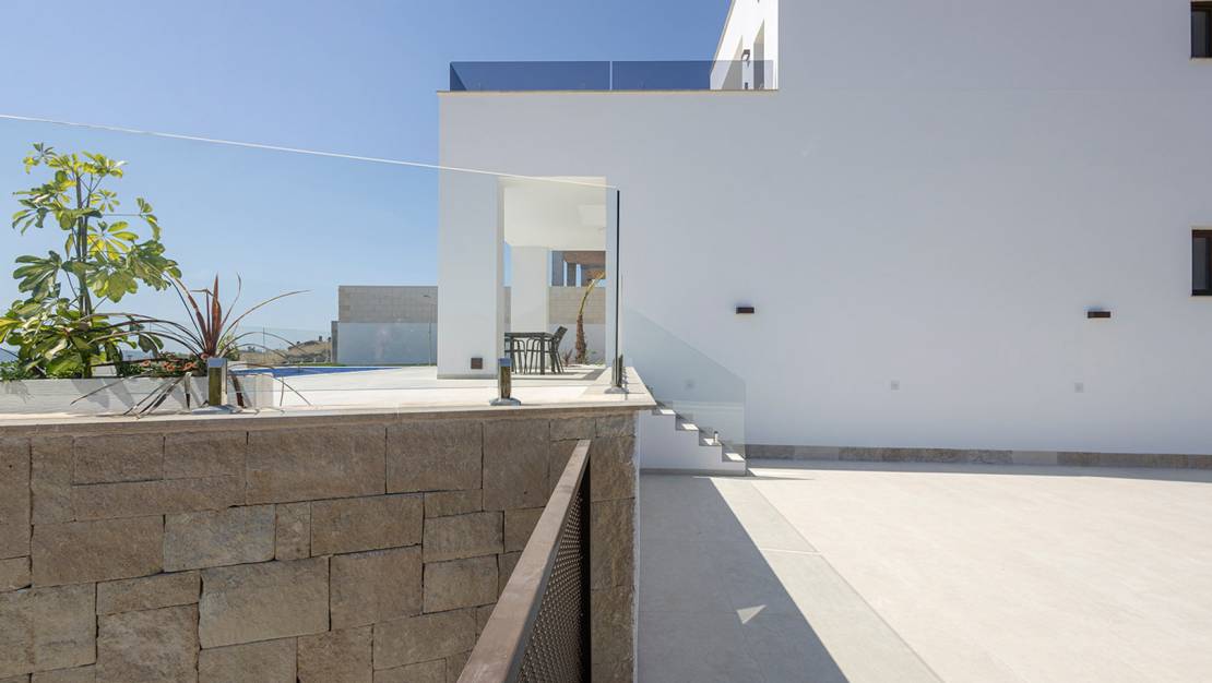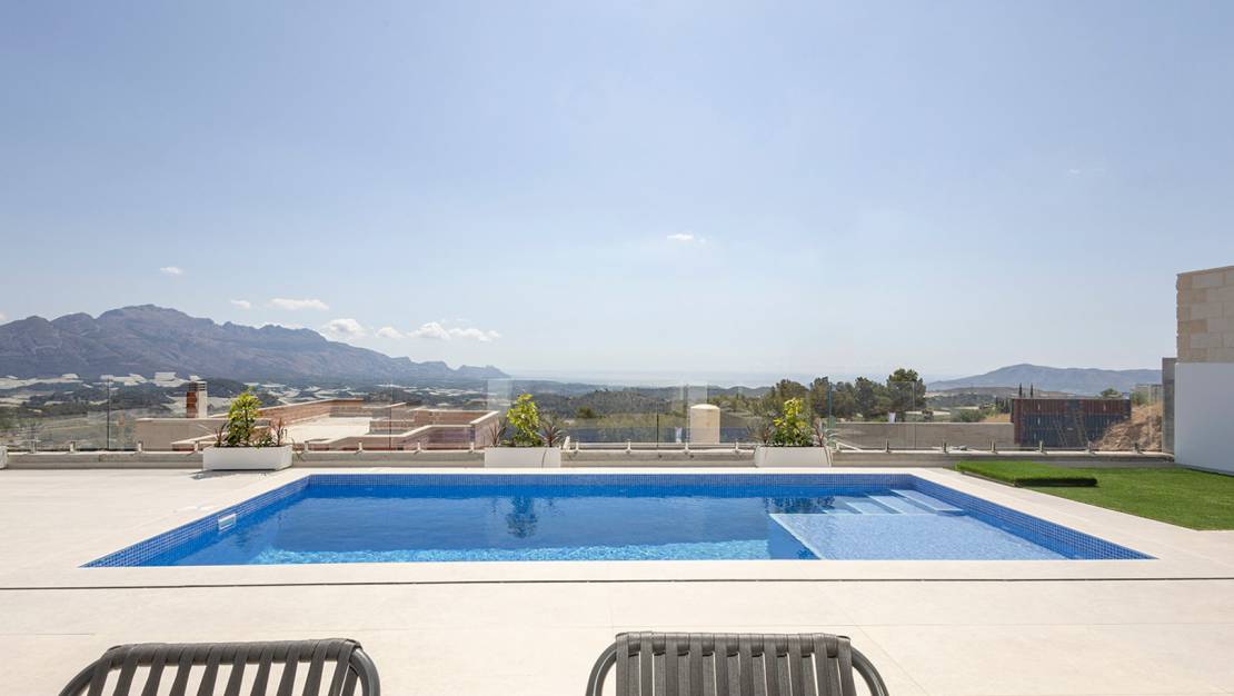 Villa independiente de diseño moderno con impresionantes vistas al mar y la montaña. Ubicada en un entorno tranquilo y elevado, esta vivienda combina líneas contemporáneas, luminosidad y una cuidada integración con el paisaje. La propiedad se distribuye en dos plantas. En la planta principal encontramos un amplio y luminoso salón-comedor con cocina abierta, concebido como un espacio funcional y acogedor, además de un dormitorio, un baño completo y un aseo de cortesía para invitados. En la planta superior se sitúan dos dormitorios en suite, ambos con baño privado y acceso a dos terrazas desde la que disfrutar de las vistas despejadas. Existe la posibilidad de añadir una tercera planta tipo solárium (opcional, con coste adicional), ideal para crear una zona chill out o disfrutar del clima mediterráneo durante todo el año. En el exterior, la villa ofrece jardines de fácil mantenimiento, piscina privada de 7x3 m con ducha exterior y plaza de aparcamiento dentro de la parcela. Una vivienda pensada para disfrutar del confort, la privacidad y las vistas, tanto como residencia habitual como inversión. A consultar disponibilidad y precio.