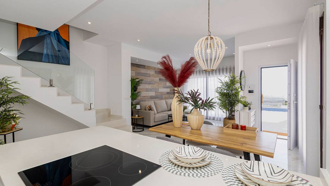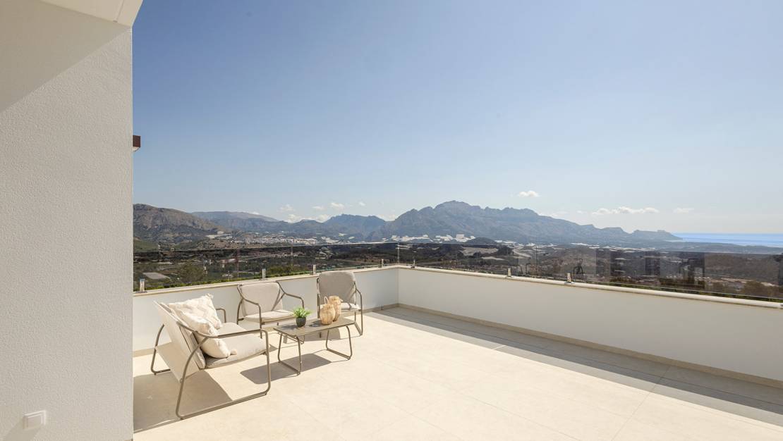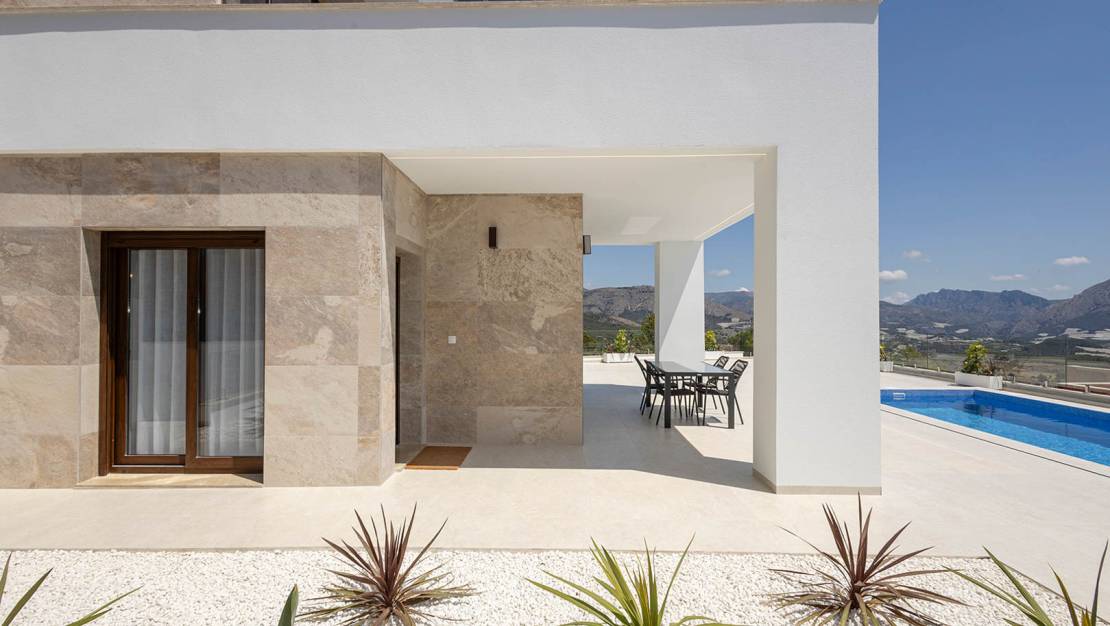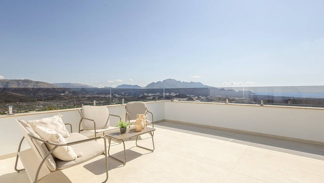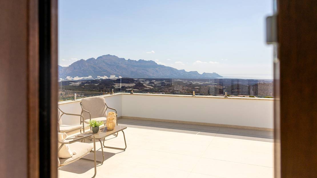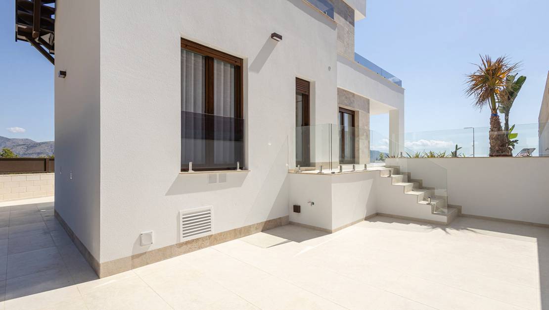 Villa independiente de diseño moderno con impresionantes vistas al mar y la montaña. Ubicada en un entorno tranquilo y elevado, esta vivienda combina líneas contemporáneas, luminosidad y una cuidada integración con el paisaje. La propiedad se distribuye en dos plantas. En la planta principal encontramos un amplio y luminoso salón-comedor con cocina abierta, concebido como un espacio funcional y acogedor, además de un dormitorio, un baño completo y un aseo de cortesía para invitados. En la planta superior se sitúan dos dormitorios en suite, ambos con baño privado y acceso a dos terrazas desde la que disfrutar de las vistas despejadas. Existe la posibilidad de añadir una tercera planta tipo solárium (opcional, con coste adicional), ideal para crear una zona chill out o disfrutar del clima mediterráneo durante todo el año. En el exterior, la villa ofrece jardines de fácil mantenimiento, piscina privada de 7x3 m con ducha exterior y plaza de aparcamiento dentro de la parcela. Una vivienda pensada para disfrutar del confort, la privacidad y las vistas, tanto como residencia habitual como inversión. A consultar disponibilidad y precio.