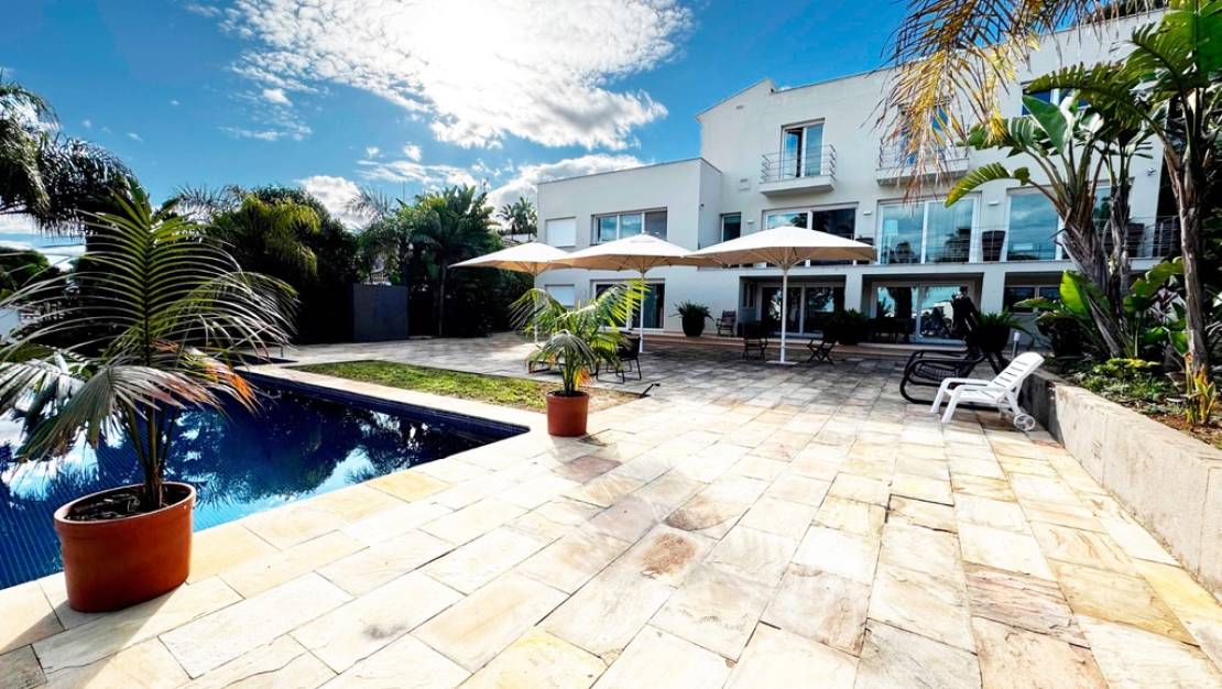 Elegante vivienda de diseño contemporáneo construida con materiales de alta calidad, situada en una tranquila zona residencial de Dénia, muy cerca del centro y de todos los servicios. La propiedad se levanta sobre una amplia parcela de 1.684 m² que garantiza privacidad y espacios pensados para disfrutar al aire libre durante todo el año, con varias terrazas, jardín de bajo mantenimiento, piscina privada de grandes dimensiones, garaje cerrado para dos vehículos y una completa cocina de verano acristalada.