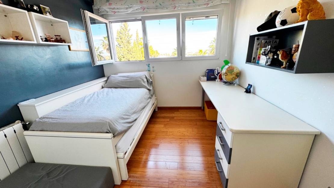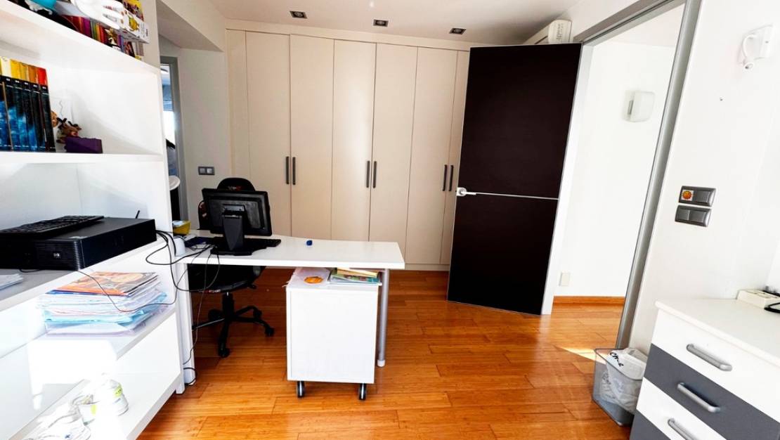 La casa, con 303 m² construidos distribuidos en tres niveles, ofrece estancias amplias y luminosas, combinando confort y funcionalidad. En la vivienda destacan su espacioso salón-comedor, una moderna cocina independiente con isla y acceso directo al exterior, varios dormitorios dobles, incluida una suite principal con vestidor, baño privado y salida a terraza con vistas abiertas y al mar en la distancia, además de una zona adicional actualmente destinada a despacho. Los baños, de generosas dimensiones, están equipados con duchas y bañera de hidromasaje, y los acabados como el suelo de bambú aportan calidez y un toque distintivo.