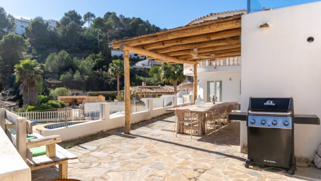Vistas al marBuena orientaciónCinco dormitorios y cuatro baños (3 ensuite)Cocina exterior cubierta completamente equipadaPrivacidadActualmente alquilada bien - interesante como inversiónDoble acristalamiento, baños y cocina renovados, aire acondicionadoA poca distancia en coche de servicios, playa y centroUbicada en un lugar tranquilo, sin miradas externas, con sol casi todo el día y una vista excepcional: aquí encantos, comodidad y rendimiento se combinan a la perfección.