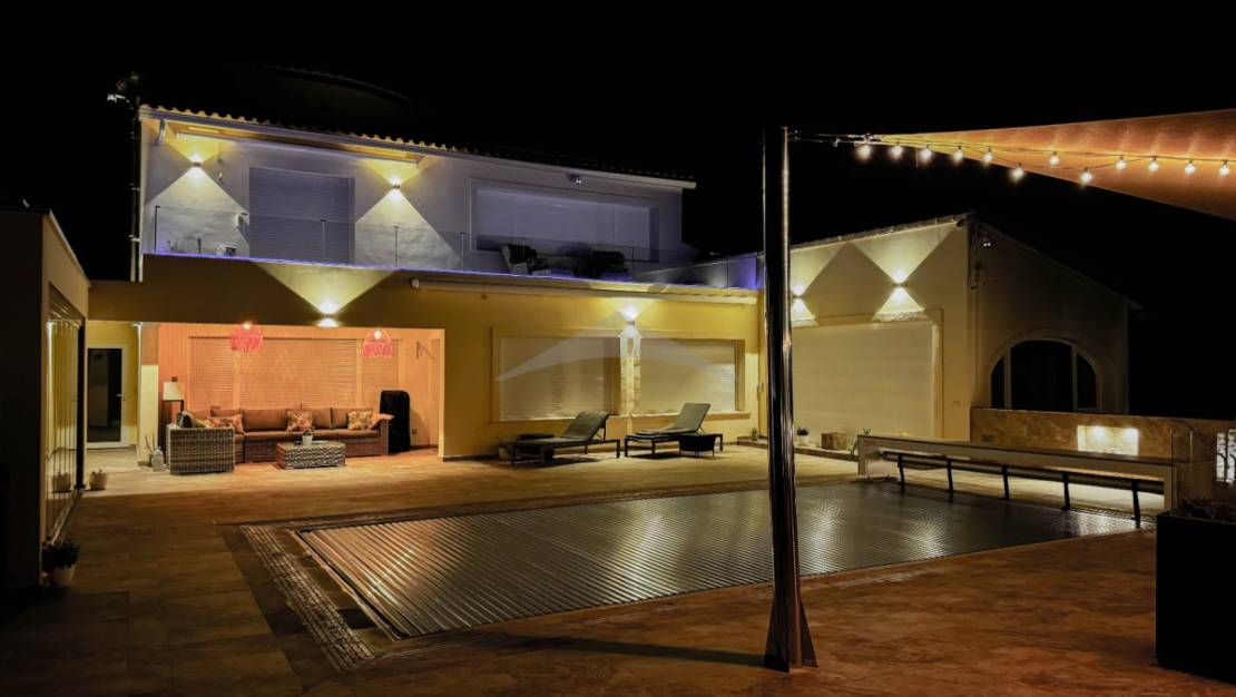 Uno de los grandes atractivos de la villa es su espectacular pool house, totalmente equipado y utilizable tanto en verano como en invierno, con bar, plancha y grill. La piscina de agua salada está climatizada y cuenta con cubierta eléctrica integrada. Un jacuzzi, una ducha exterior y un espacio de almacenamiento para los accesorios de piscina y jardín completan esta zona de bienestar.