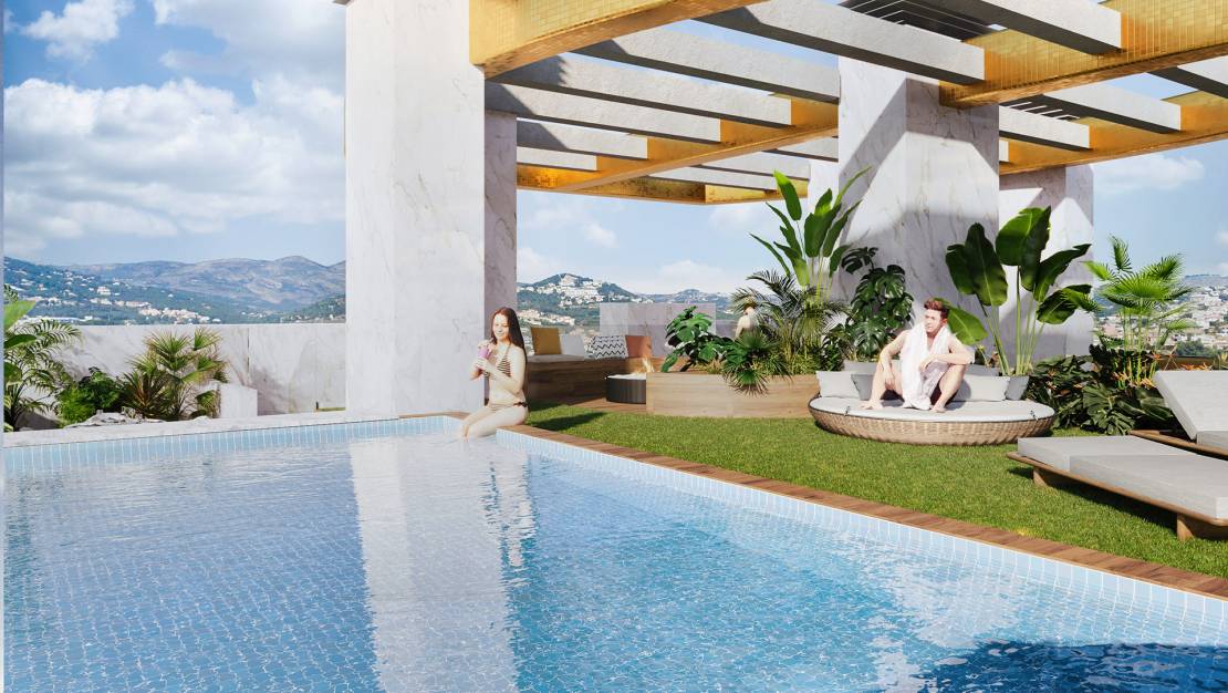 Los exteriores de este residencial en Calpe están diseñados para maximizar el disfrute del clima mediterráneo. Cada apartamento cuenta con una terraza privada, ideal para relajarse y disfrutar de las vistas al mar. La presencia de pérgolas añade un toque de elegancia y funcionalidad, permitiendo crear espacios sombreados que se integran perfectamente con el entorno natural. El suelo cerámico de alta calidad asegura durabilidad y un mantenimiento sencillo, ideal para la vida junto al mar. La cercanía a la playa, a solo 0.5 km, permite disfrutar de paseos costeros y actividades al aire libre en cualquier momento. Este entorno privilegiado convierte a estos apartamentos en una opción ideal para quienes buscan un estilo de vida relajado y en contacto con la naturaleza.