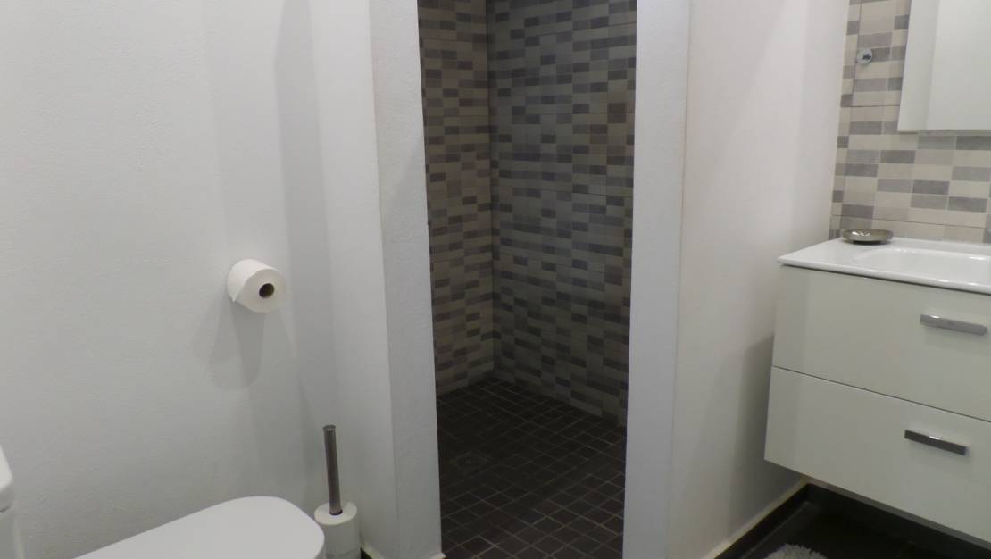 La vivienda principal cuenta con un amplio salón, una terraza acristalada, una cocina independiente, 3 dormitorios y 2 baños completos. En la planta baja se encuentra un salón-comedor con cocina abierta, 2 dormitorios, un baño completo, un aseo de cortesía y acceso a la piscina.