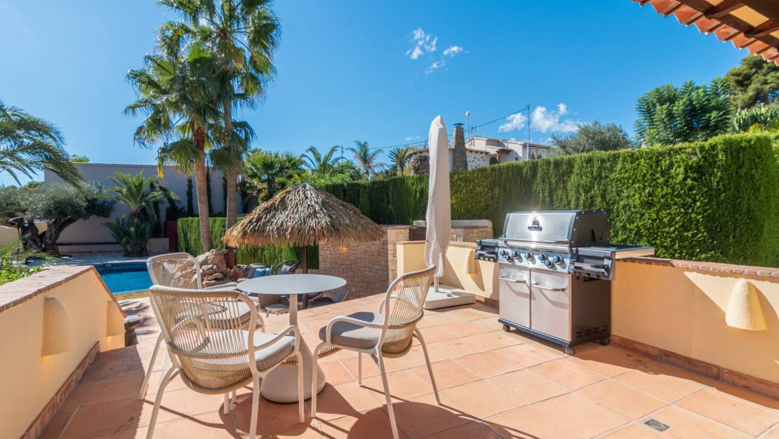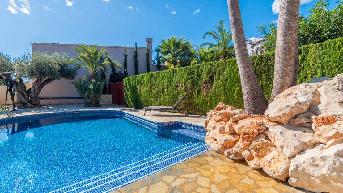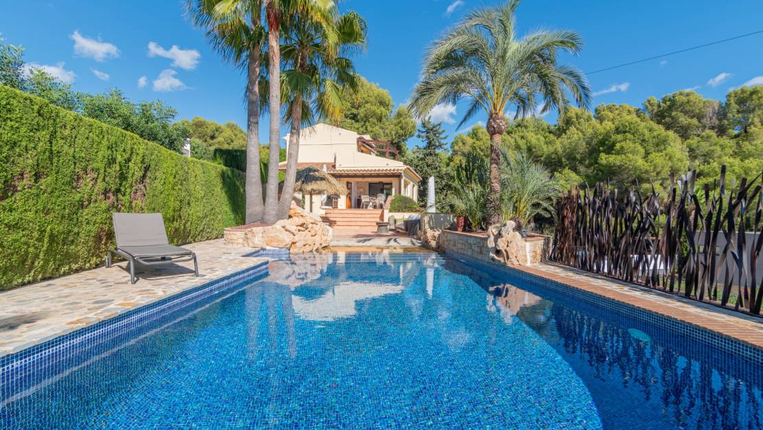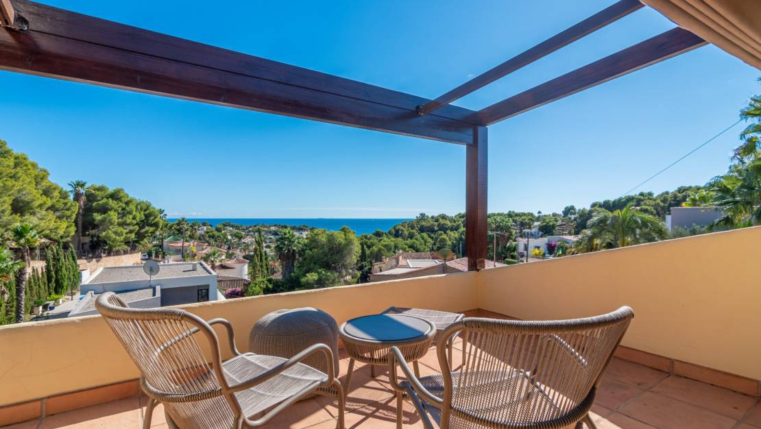 Indrukwekkende villa met zwembad en zeezicht in een zeer rustige omgeving. De woning telt drie verdiepingen, op de eerste verdieping bevinden zich de garage en twee slaapkamers met twee badkamers, de wasruimte en de berging. Op de tweede verdieping bevindt zich de woonkamer met prachtig uitzicht en de open keuken met eetkamer, een mooi terras met schuifdeuren om te allen tijde te genieten van het uitzicht op zee en het zwembad. Rondom het zwembad ligt een prachtige, verzorgde tuin. Op de derde verdieping bevindt zich de hoofdslaapkamer met badkamer en kleedkamer, er is ook een ongelooflijk terras met panoramisch uitzicht op zee. Het huis is zeer goed onderhouden en wordt verkocht inclusief huis- en tuinmeubilair. Een paar minuten rijden van de zee en supermarkten.