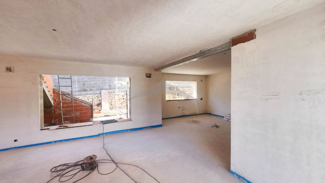 De begane grond bestaat uit de woonkamer, eetkamer en open keuken van meer dan 65 m², die uitkomt op het grote terras en het buitenzwembad. Daarnaast zijn er op dit niveau gastentoiletten en twee ruime slaapkamers met ingebouwde kasten en en-suite badkamers.