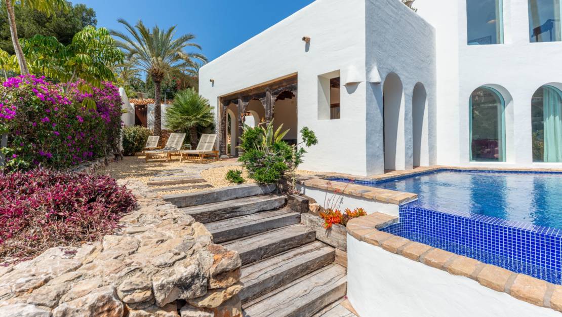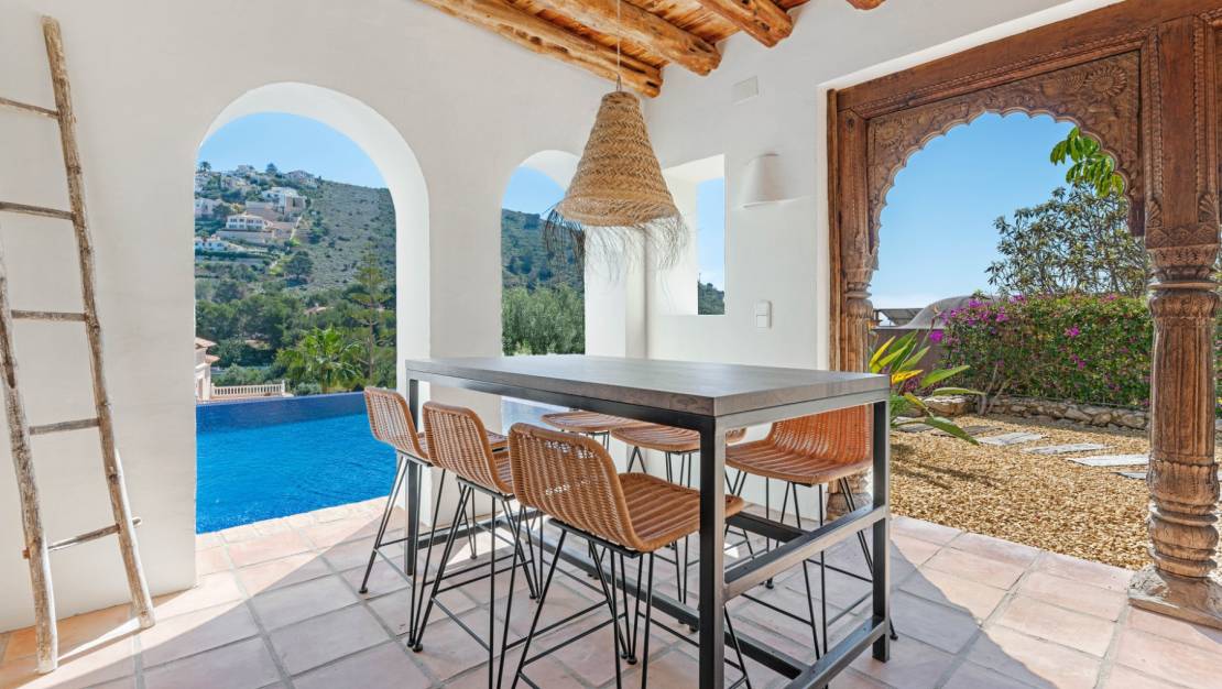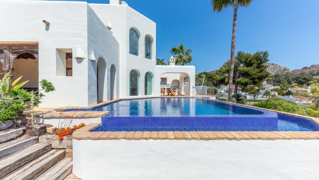 Villa in Ibiza-stijl in El Portet Moraira. Deze prachtige villa, gebouwd in 2007 en volledig gerenoveerd in 2024, staat te koop. Een warme en elegante woning op slechts 1 km van het strand van El Portet. Witte architectuur, mediterrane essentie en tijdloos design op slechts 1 km van het iconische strand El Portet. Wij presenteren deze villa op Ibiza, die de serene elegantie van de Middellandse Zee belichaamt. Gelegen in een van Moraira's meest gewilde wijken, El Portet, combineert deze woning perfect traditionele esthetiek met modern comfort. Gebouwd in 2007 en volledig gerenoveerd in 2024 met hoogwaardige materialen en geavanceerde technologieën, belichaamt dit huis een ontspannen levensstijl en comfortabele oplossingen. De strakke lijnen, witgekalkte muren, balkenplafonds en vloeiende binnen- en buitenruimtes belichamen de essentie van de architectuur van Ibiza, opnieuw geïnterpreteerd met gevoel en authenticiteit. De woning is gelegen op een privé en zonnig perceel, op slechts 1 km van de zee, en is verdeeld over drie verdiepingen. Op de begane grond leidt een hal met gastentoilet naar een ruime woonkamer met toegang tot twee veranda's met gedeeltelijk uitzicht op zee, het zwembad en de aangelegde tuin. Vanuit de woonkamer heeft u toegang tot een grote eetkamer met veel natuurlijk licht en de volledig uitgeruste keuken, die ook een aparte wasruimte heeft. Op de benedenverdieping bevinden zich twee tweepersoonsslaapkamers en een ruime, complete badkamer. Het is mogelijk om hier een tweede badkamer te creëren. Er is ook een geïntegreerde, klimaatgecontroleerde wijnkelder, ideaal voor wijnliefhebbers. Op de bovenste verdieping bevindt zich de master suite, voorzien van een eigen badkamer en een groot terras met vrij uitzicht op zee. De villa is voorzien van vloerverwarming, airconditioning, een alarmsysteem, wifi, recent geplaatste dubbele beglazing en architecturale verlichting, zowel binnen als buiten. De woning wordt verkocht met zorgvuldig geselecteerde meubels die de Ibizaanse stijl van de villa complementeren. Buiten omringt een mediterrane tuin met automatische irrigatie het huis en het zwembad past harmonieus in het landschap. De woning beschikt tevens over een afgesloten garage voor twee auto's en een eigen voetgangerstoegang. Een woning die locatie, stijl en kwaliteit combineert in een van de meest exclusieve gebieden aan de noordelijke Costa Blanca. Deze instapklare villa op Ibiza biedt een unieke kans om een karaktervolle woning te verwerven, direct aan de kust in Moraira.