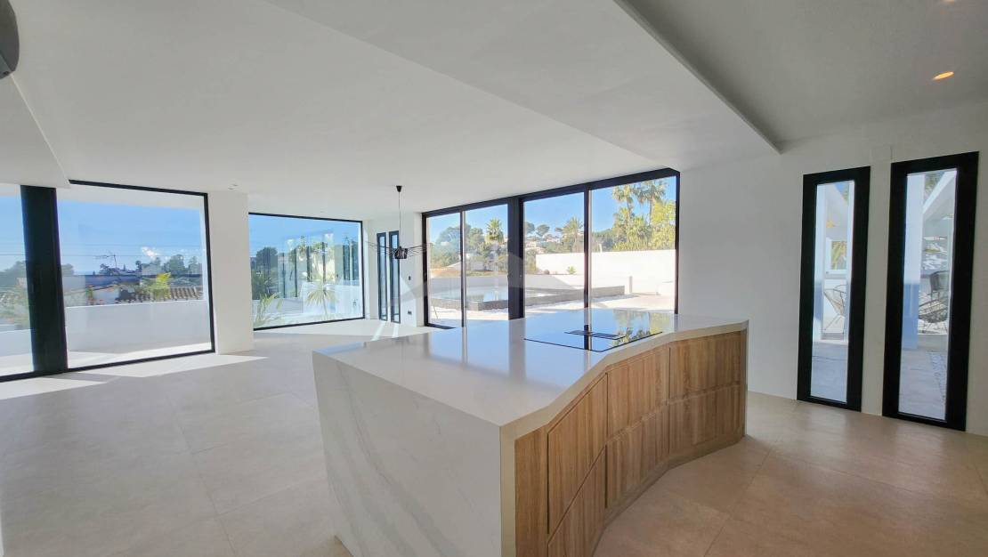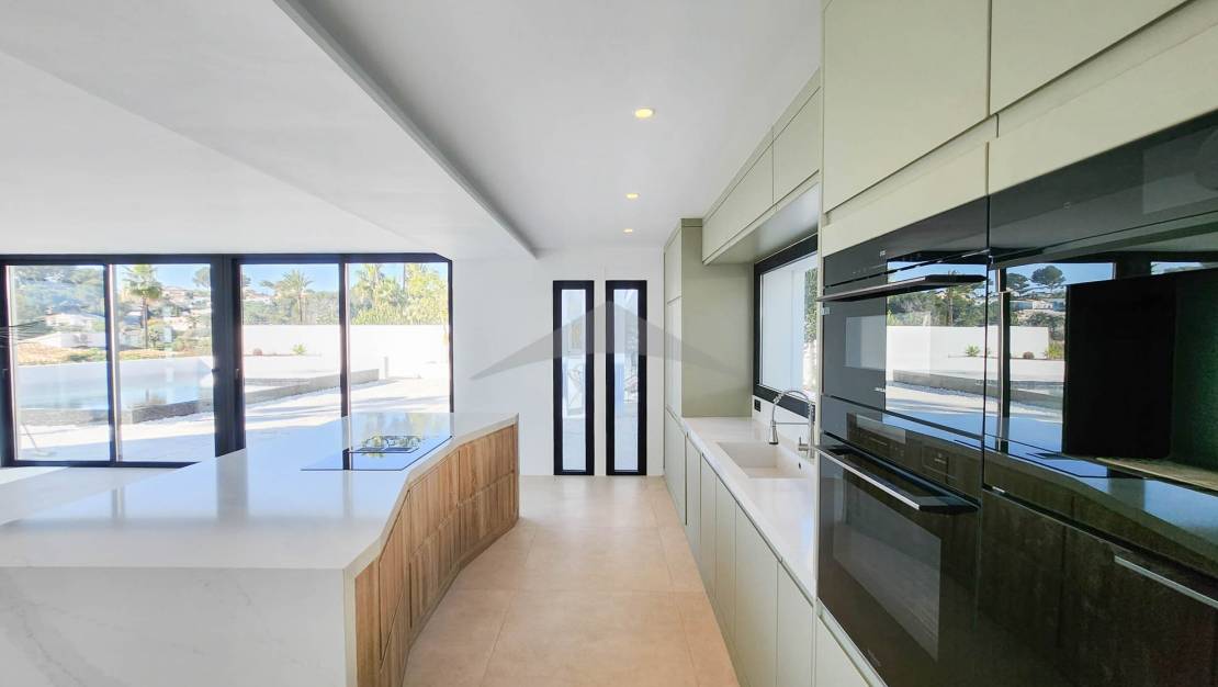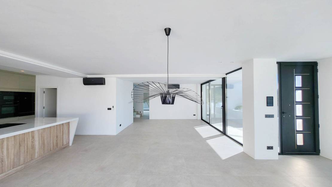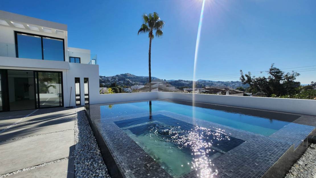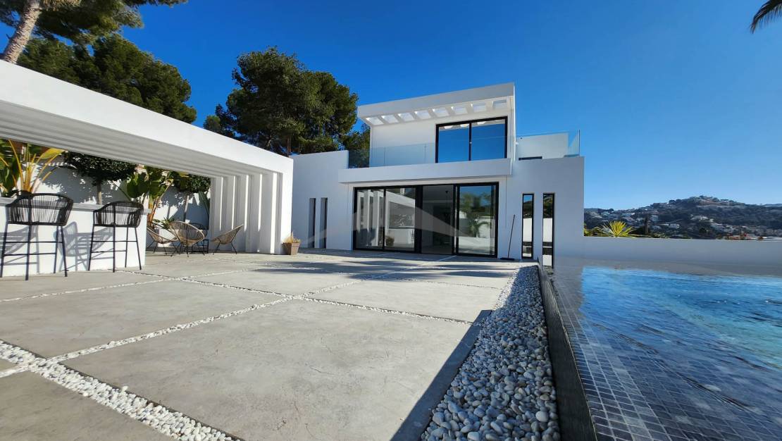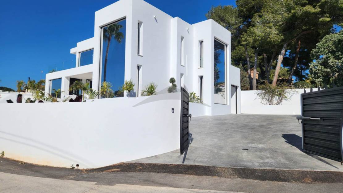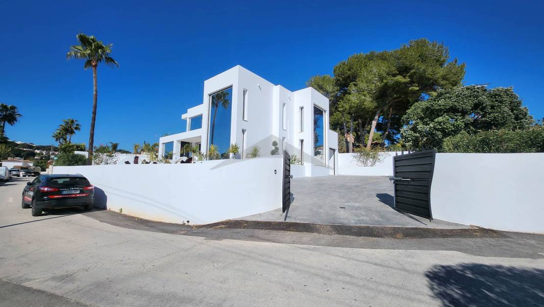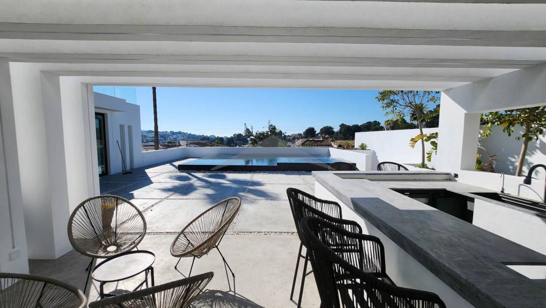 Gelegen op slechts 4 minuten rijden en 10 minuten fietsen van het centrum van Moraira, zal deze prachtige nieuwgebouwde villa u verleiden met zijn moderne ontwerp, zuidgerichte oriëntatie en hoogwaardige afwerkingen.Bij binnenkomst wordt u verwelkomd in een ruime en lichtvolle woonkamer, bestaande uit een grote woon- en eetkamer, die naadloos is verbonden met een moderne, volledig uitgeruste open keuken. Een van de opvallende kenmerken van deze woning zijn de brede schuifdeuren van vloer tot plafond, die directe toegang bieden tot de buitenterrassen en zorgen voor een perfecte verbinding tussen binnen- en buitenleven.Geniet van een magnifieke infinity pool en een volledig uitgeruste zomerkeuken, ideaal om te ontspannen en te entertainen op zonnige dagen in een uitzonderlijke omgeving.Op de begane grond omvat de villa:Twee comfortabele slaapkamers,Een gasten-WC,En een utilityruimte met directe toegang tot de garage — een zeer praktische functionaliteit om boodschappen te lossen of discreet toegang tot de woning te krijgen.Op de bovenverdieping vindt u:Twee extra slaapkamers,En een master suite met een privé kleedkamer en uitzicht op zee.De woning beschikt ook over meerdere privéterrassen, die rust en stilte bieden voor elke gast. Buiten biedt de oprit parkeergelegenheid voor 4 tot 5 voertuigen, naast de afgesloten garage.