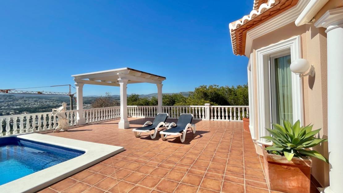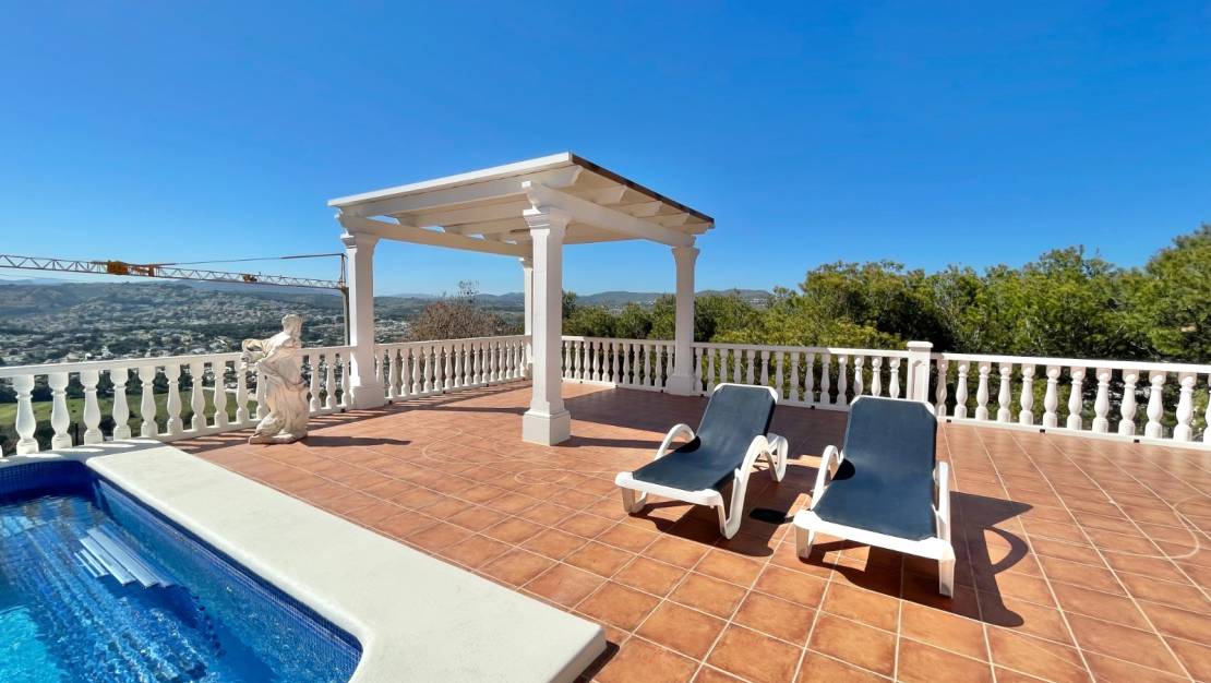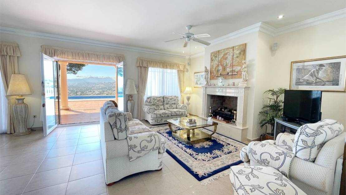Spectaculaire villa te koop in de urbanisatie Arnella in Moraira, met adembenemend uitzicht op zee en de vallei. Deze villa is gebouwd met hoogwaardige materialen en ligt op een groot perceel van ruim 2.000 m² op de top van een berg, aan het einde van een doodlopende weg, wat absolute privacy en rust biedt, terwijl het slechts enkele minuten rijden is van het strand van El Portet en het centrum van Moraira.