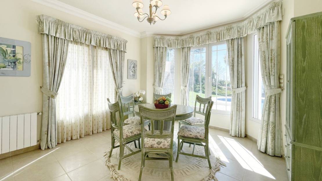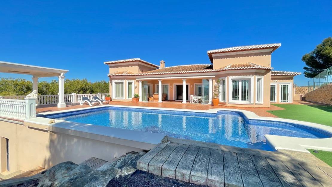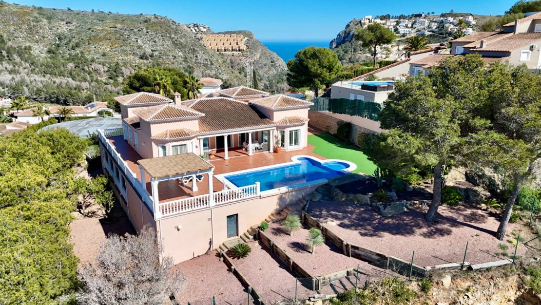 De woning met een oppervlakte van 427 m², is verdeeld over twee verdiepingen en biedt grote ruimtes, meerdere terrassen, een onderhoudsvriendelijke tuin en een privézwembad met een zuid-westelijke oriëntatie, van waaruit u kunt genieten van een spectaculair uitzicht op de zee, de Peñón de Ifach, de Sierra de Bernia en de Montgó.