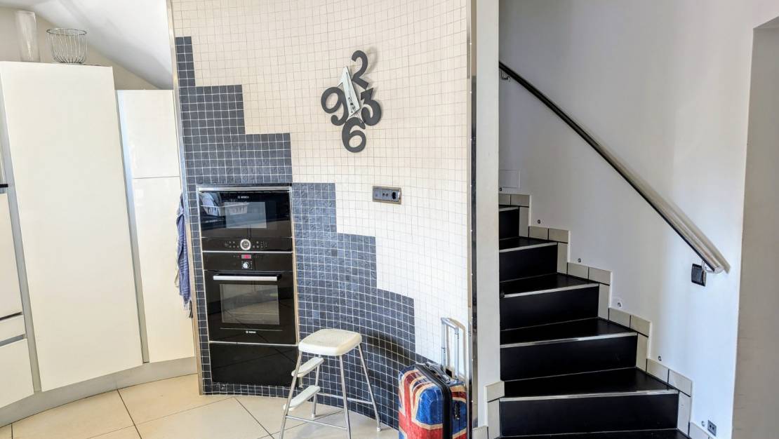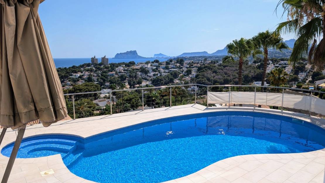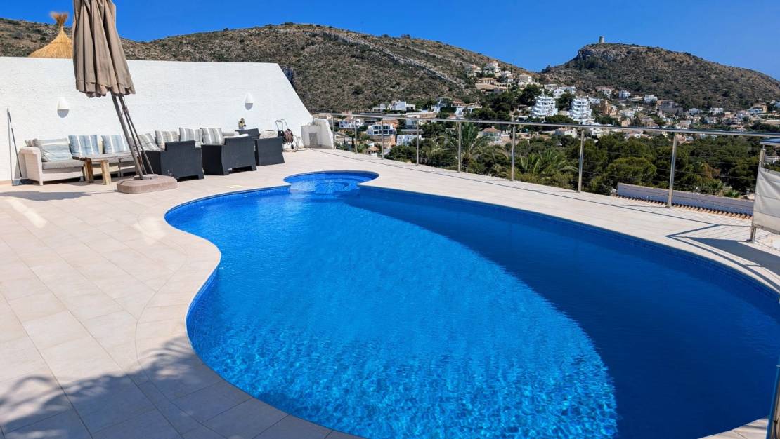 Deze villa in traditionele stijl met een eigentijds interieur is genesteld in de heuvels met uitzicht op de baai van El Portet met daarachter de groene zone. De villa is verdeeld over drie verdiepingen, elk met een opmerkelijk uitzicht, en ligt op een hellend perceel in een zeer rustige woonstraat. Er is parkeergelegenheid aan de bovenkant van het perceel met een trap naar beneden naar het belangrijkste woonniveau, aan de onderkant van het perceel is er een garage en off-road parking. Je komt binnen in de bijkeuken en dan direct in de ruime open woon-/eet-/keuken met prachtig uitzicht door de grote ramen en deuren. De luxe keuken is volledig uitgerust met wit glanzende kasten en zwarte Silestone werkbladen en heeft een ontbijtbar. Er is een eethoek en verschillende ruimtes om te socializen, zitten en ontspannen. De televisieruimte heeft een indrukwekkende zwarte tegelstenen open haard met een geïntegreerde houtkachel. Buiten is er een rond balkon. Vanuit de woonkamer is er een hal met een gastentoilet en de hoofdslaapkamer met een en-suite badkamer met douche. Op de trap naast de keuken vind je een ruim kantoor, een tweepersoonsslaapkamer met terras en ongelooflijk uitzicht en een grote bergruimte op het dak. Via de trap vanuit de woonkamer kom je in de bar/keuken bij het zwembad, een ruime kamer met eethoek en een volledig ingerichte keuken met roomkleurige eenheden en zwarte granieten werkbladen, vanaf hier zijn er een paar treden naar beneden naar het terras bij het zwembad. Via een deur in deze kamer kom je in een grote gastenslaapkamer met een en-suite badkamer met douche en een deur naar de open naya bij het zwembad. De open naya heeft een ontspanningsruimte en een gastentoilet voor het zwembad. Het zwembad zelf is ruim met een heerlijk zwembad, een buitendouche en veel ruimte om te genieten van de zon en het uitzicht. Via een deur op het zwembadterras kom je bij de trap aan de zijkant van de villa die een volgroeide tuin heeft met planten, bomen en palmen. Bovenaan de trap is een berging met de zonneapparatuur, onderaan de trap is een grote berging met de apparatuur voor de zwembadpomp.- Belangrijkste punten:- Gebouwd in 1977- Gerenoveerd door huidige eigenaar sinds 2012- Aerothermische vloerverwarming- Airconditioning- Zonnepanelen met 22km batterijen- 600 liter warm water opslag- Automatische irrigatie- Ramen en deuren met dubbele beglazing- Rolluiken en muggenhorren- Gemakkelijk te onderhouden tuin- Glasvezel internet beschikbaar- Luifels- Moderne roestvrijstalen en glazen balustrades- Verwarmd 32m2 zwembad met zout water- Jaarlijkse vuilnisbelasting 276€- Jaarlijkse onroerende voorheffing te volgen- Afstanden:- El Portet strand 1.2km- Centrum en jachthaven 1.9km- Golf 5.7km- Watersportcentrum 11.5km- Toegang tot de snelweg in Benissa 12km- Als je op zoek bent naar een villa met een prachtig uitzicht, zoek dan niet verder