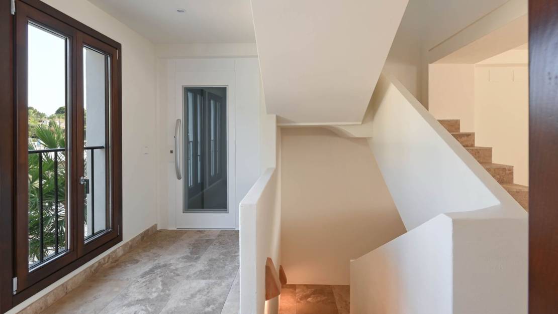 De eerste verdieping is bereikbaar via een binnentrap of de lift en bestaat uit drie extra slaapkamers en drie en-suite badkamers. De ruime toegang tot het boventerras biedt twee kamers een weids panoramisch uitzicht op de Middellandse Zee, terwijl de andere kamer vanaf het balkon een volledig frontaal zeezicht biedt. Alle drie creëren ze een serene oase voor zowel bewoners als gasten.