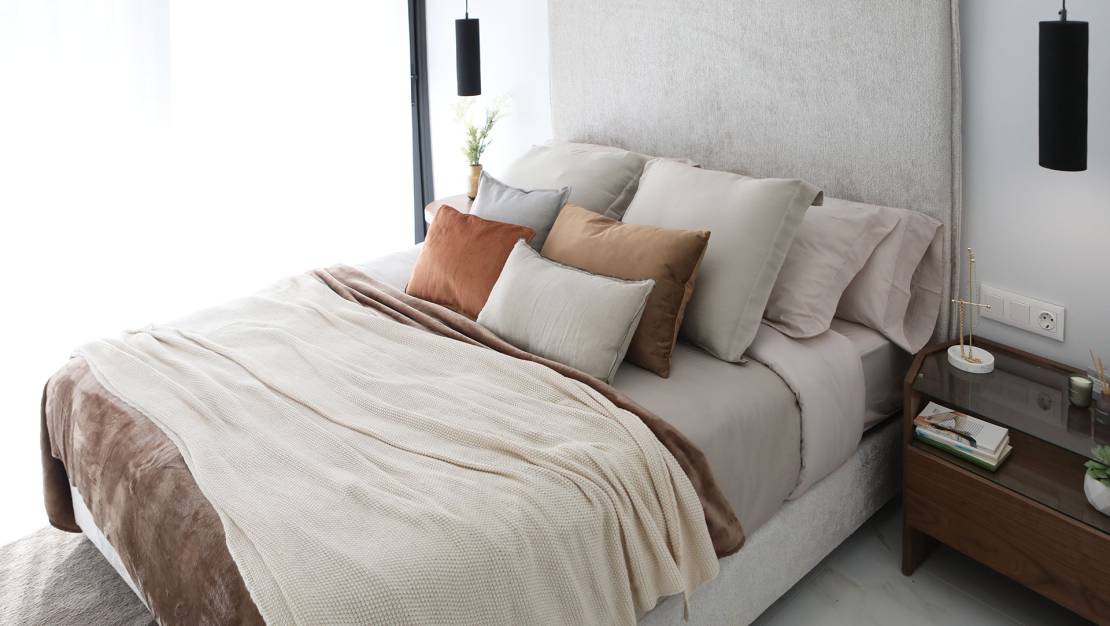 De interieurs van deze appartementen zijn ontworpen om maximaal comfort en functionaliteit te bieden. Met opties van twee en drie slaapkamers is elk appartement uitgerust met twee moderne badkamers. De porseleinen tegelvloeren voegen een vleugje elegantie toe en zijn gemakkelijk te onderhouden. Elektrische rolluiken en airconditioning zorgen voor een comfortabele omgeving gedurende het hele jaar. Bovendien bieden de inbegrepen apparaten en ingebouwde kasten een extra niveau van gemak en stijl, waardoor deze appartementen een ideale plek zijn om te wonen.