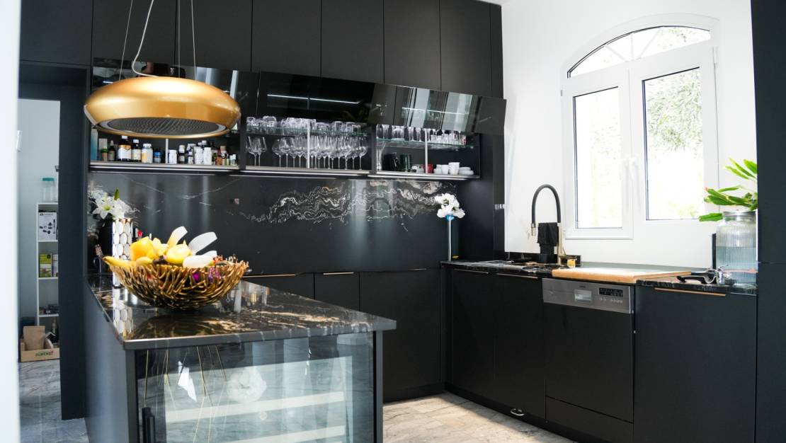 De villa is onlangs gerenoveerd met hoogwaardige materialen en heeft een modern design en inrichting met exclusief designmeubilair, wat in elke hoek een elegante en verfijnde sfeer creëert.