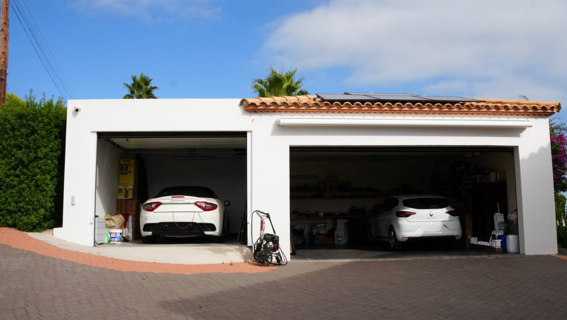 De grote garage biedt plaats aan drie voertuigen en bij het zwembad is er de mogelijkheid om een apart appartement te bouwen.