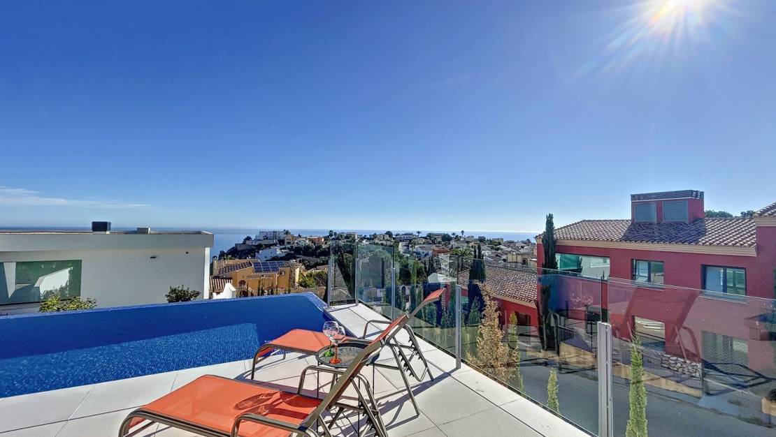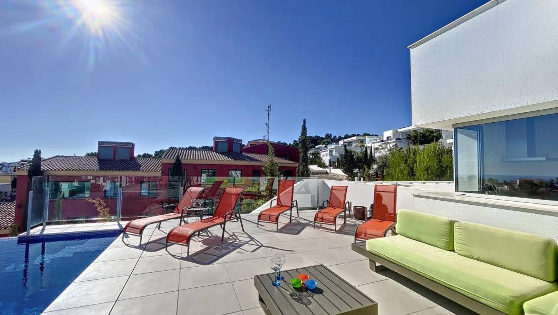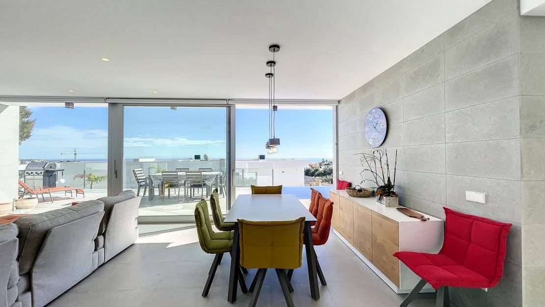 Onlangs gebouwde moderne villa met zeezicht en privé zwembad, gelegen in de woonwijk Lirios in Cumbre del Sol, Benitachell (tussen Jávea en Moraira). De in 2021 gebouwde villa op een perceel van 803 m2 heeft een totale bebouwde oppervlakte van 303 m2 (191 m2 woonruimte, 86 m2 terrassen en 26 m2 overdekte parkeerplaats met pergola). De villa is gebouwd in twee verdiepingen en heeft drie tweepersoons slaapkamers, twee badkamers, woon-eetkamer, open keuken met bijkeuken op de hoofdverdieping en een tweepersoons slaapkamer, woonkamer en badkamer in het souterrain met onafhankelijke toegang. De villa is afgewerkt volgens een zeer hoge standaard en is uitgerust met vloerverwarming, gekanaliseerde airconditioning via een gelijktijdig MITSUBISCHI ELECTRIC® airconditioning en warm water productiesysteem op basis van een externe warmtepomp met een hoog energierendement. De villa is omgeven door een prachtige onderhoudsarme tuin in mediterrane stijl met automatisch irrigatiesysteem. Residencial Lirios - Exclusiviteit en panoramisch uitzicht op zee Residencial Lirios is een prestigieuze villawijk in de urbanisatie Cumbre del Sol in Benitachell (Alicante). Het bestaat uit 235 kavels van 750 m² tot 1.200 m², die ruime en exclusieve ruimtes bieden om te genieten van de privacy en de rust van de Middellandse Zee. De meeste percelen hebben een adembenemend uitzicht op zee, met oriëntaties op het oosten en zuidoosten, wat natuurlijk licht en spectaculaire zonsopgangen over de maritieme horizon garandeert. Residencial Lirios ligt tussen de woonwijken Kalmias, Magnolias en Jazmines en geniet van uitstekende vervoersverbindingen binnen Cumbre del Sol. Het ligt vlakbij de zuidelijke ingang van de urbanisatie, waardoor je gemakkelijk toegang hebt tot alle diensten en attracties van de omgeving. Bevoorrechte locatie en nabijheid van diensten Residencial Lirios biedt een omgeving van natuur, exclusiviteit en comfort, met gemakkelijke toegang tot stranden, restaurants, supermarkten en essentiële diensten: 1 tot 2 km ✔Dreamsea Mediterranean Camp, met bar en restaurant. ✔Toegang tot drie paradijselijke baaien: Playa Moraig, Cala de los Tiestos en Cala Llebeig. 2 tot 3 km ✔Winkelcentrum Adelfas, met Pepe La Sal supermarkt, kapper, onderhoudsbureau en verhuur. ✔Restaurant La Cumbre, bekend om zijn uitstekende gastronomie. ✔ Apotheek en sportcentrum, met paddle- en tennisbanen en bar. ✔Hippisch centrum voor liefhebbers van paardrijden. ✔Lady Elizabeth International School, een van de meest prestigieuze aan de Costa Blanca. ✔Mercadona supermarkt voor al uw dagelijkse boodschappen. 5 tot 7 km ✔Mas y Mas Supermarkt. ✔Benitachell centrum met alle essentiële diensten. ✔El Portet strand in Moraira, een idyllische enclave met kristalhelder water. ✔Jávea golfbaan, perfect voor golfliefhebbers. Op 12 km afstand ✔Arenal strand in Jávea, met zijn boulevard, restaurants en recreatiegebieden. Een plek waar luxe en natuur elkaar ontmoeten. Residencial Lirios in Cumbre del Sol is de ideale plek voor wie op zoek is naar een exclusief huis aan de Costa Blanca, omgeven door natuur, eersteklas services en een spectaculair uitzicht op zee. Wil je meer informatie over onze villa's in Residencial Lirios? Neem contact met ons op en ontdek je nieuwe thuis in Cumbre del Sol.