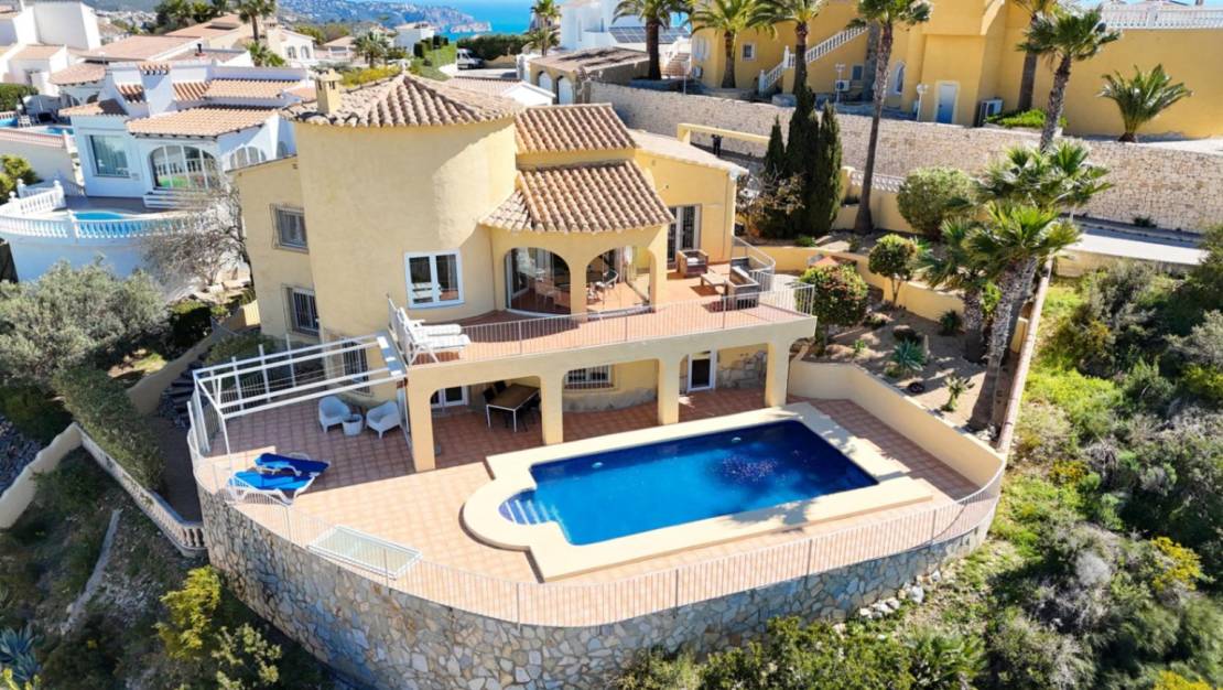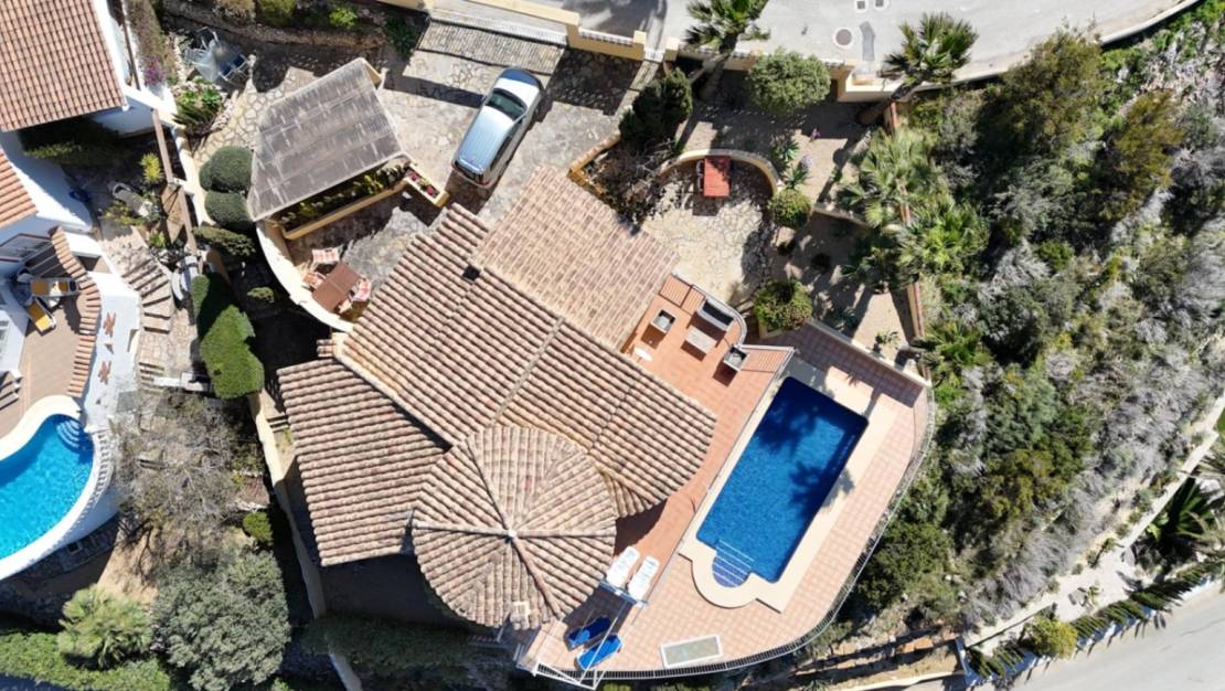 Villa met adembenemend uitzicht op zee en privézwembad in Cumbre del Sol We presenteren deze prachtige villa gelegen in de exclusieve woonwijk Magnolias, binnen de prestigieuze urbanisatie Cumbre del Sol, gelegen tussen Jávea en Moraira, in de gemeente Benitachell. Wat dit object echt bijzonder maakt, is het spectaculaire panoramische uitzicht op de Middellandse Zee, de iconische Ifach-rots van Calpe en de majestueuze Sierra Bernia-bergketen. Met een bebouwde oppervlakte van ongeveer 250 m², inclusief terrassen, is deze villa verdeeld over twee verdiepingen op een perceel van 849 m². Binnen vind je drie ruime tweepersoonsslaapkamers, elk met een eigen en-suite badkamer, evenals een gastenbadkamer. De lichte en ruime woon/eetkamer is geïntegreerd met een moderne open keuken en geeft direct toegang tot een overdekt terras, perfect om buiten te genieten. De woning heeft ook een extra terras, ideaal voor ontspannende momenten. Op de benedenverdieping leidt een elegant kantoor met interne trap naar een gezellige studeerkamer of bibliotheek, vanwaar je ook toegang hebt tot het overdekte terras en het zwembadgedeelte. Deze villa is in uitstekende staat en van alle gemakken voorzien, zoals centrale verwarming en airconditioning met splits in de meeste kamers. Buiten biedt de villa ruime parkeergelegenheid voor meerdere voertuigen, evenals een overdekte parkeerplaats voor één auto. Dit alles wordt omringd door een charmante tuin in mediterrane stijl, die een vleugje frisheid en natuur toevoegt aan deze privéoase. Ontdek de luxe en exclusiviteit van Residencial Magnolias in Cumbre del Sol, Benitachell In de begeerde urbanisatie Cumbre del Sol, in het hart van de Costa Blanca, ligt Residencial Magnolias, een prestigieuze villawijk die is ontworpen om een unieke levensstijl te bieden, waar luxe en comfort samengaan met de schoonheid van de natuurlijke omgeving. Residencial Magnolias heeft 196 kavels van 750 tot 1.200 m², zorgvuldig ontworpen om harmonieus te passen in het mediterrane landschap en optimaal te profiteren van het prachtige uitzicht op zee. Elk perceel is strategisch georiënteerd op het oosten, zuiden of westen, waardoor uitzonderlijk natuurlijk licht en een spectaculair uitzicht op de Middellandse Zee gegarandeerd is. Magnolias ligt in het zuidelijke deel van Cumbre del Sol en heeft een bevoorrechte ligging, grenzend aan de exclusieve woonwijken Kalmias, Lirios en Palmeras. Bovendien zorgt de nabijheid van de zuidelijke ingang van het project voor gemakkelijke toegang en een onovertroffen locatie binnen deze voorname gemeenschap. Nabijgelegen voorzieningen voor een vol en actief leven De locatie van Magnolias onderscheidt zich niet alleen door de rust en het onvergelijkbare uitzicht, maar ook door de nabijheid van essentiële diensten en recreatiefaciliteiten die dit gebied tot een ideale plek maken om te wonen: Op 1 of 2 kilometer afstand:Dreamsea Mediterranean Camp, met een ontspannen sfeer, bar, restaurant en directe toegang tot het mooie strand van Morach en de pittoreske baaien van Los Tiestos en Llebeig.Op 3 tot 4 kilometer afstand:Winkelcentrum Adelfas, met onder andere:Pepe la Sal supermarkt .Kapper en onderhouds- en verhuurbureau.Restaurants zoals de cafetaria bar en het bekende La Cumbre.Drogist.Sportfaciliteiten voor paddle tennis en tennis, een sportcentrum met bar en de prestigieuze internationale Lady Elizabeth School.Mercadona supermarkt, met verse kwaliteitsproducten.Op 6 tot 8 kilometer afstand:Mas y Mas supermarkt.Het centrum van Benitachell.Het charmante strand van El Portet de Moraira.De exclusieve golfbaan van Jávea.Op 13 kilometer afstand:Het beroemde strand Arenal in Jávea, met zijn levendige boulevard, eersteklas restaurants en een gevarieerd vrijetijdsaanbod.Een plek om volop van het leven te genieten Wonen in Residencial Magnolias betekent elke dag wakker worden omgeven door de sereniteit en schoonheid van de Middellandse Zee, zonder het comfort op te geven van alles wat je nodig hebt binnen handbereik. Van ontspannende strandwandelingen tot toegang tot exclusieve diensten, dit is een unieke kans voor wie op zoek is naar een residentie die luxe, natuur en comfort combineert. Ben je klaar om de stap te zetten naar een uitzonderlijk leven? We nodigen je uit om Residencial Magnolias te leren kennen en te ontdekken waarom deze gemeenschap de ideale plek is voor je nieuwe huis aan de Costa Blanca. Neem vandaag nog contact met ons op en laat ons u helpen de villa van uw dromen te vinden.