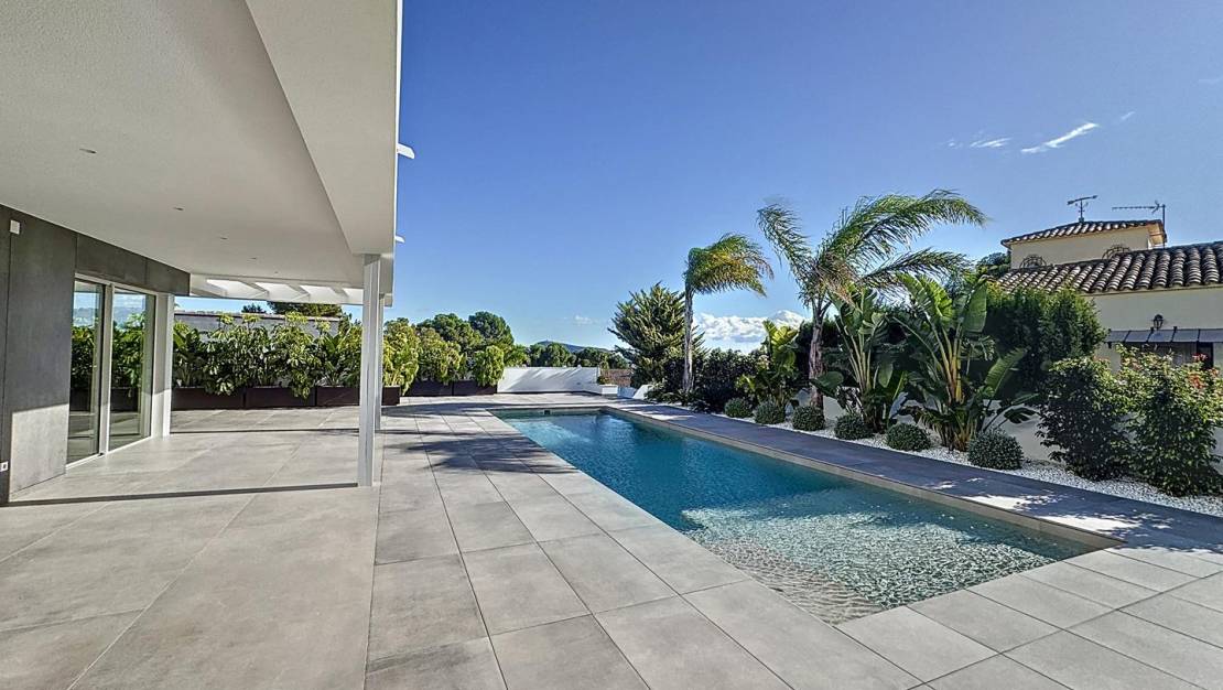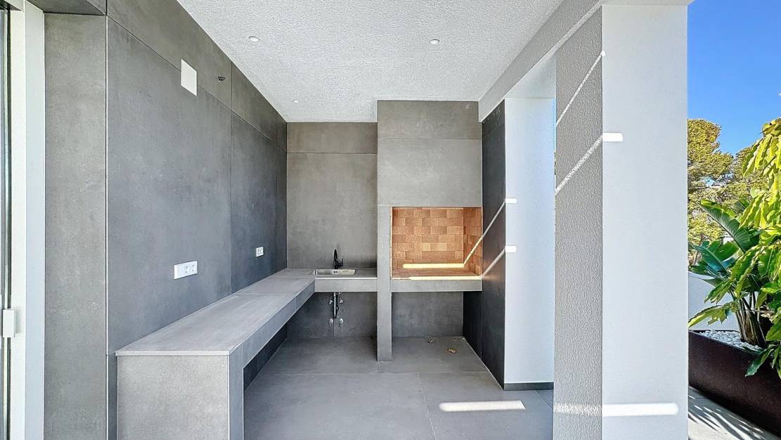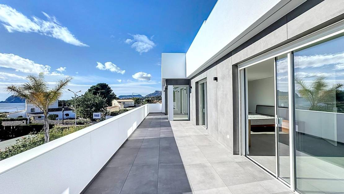 Exclusieve nieuwbouwvilla in San Jaime, Moraira Met veel genoegen presenteren wij u deze prachtige nieuwbouwvilla, gelegen in San Jaime, een van de meest gewilde wijken van Moraira. Dankzij de bevoorrechte locatie kunt u genieten van een rustige en exclusieve omgeving, op slechts een steenworp afstand van supermarkten, apotheken, restaurants en de prachtige stranden van de Costa Blanca. Vanaf het eerste moment boeit deze villa met zijn eigentijdse architectonische ontwerp en hoogwaardige afwerking. Geniet van het spectaculaire panoramische uitzicht op de Middellandse Zee, met de iconische Peñon de Ifach aan de horizon, zichtbaar vanuit de belangrijkste woongedeeltes. Op de begane grond biedt het pand een ruime en lichte open woon- en eetruimte, waar grote ramen van vloer tot plafond de ruimte overspoelen met natuurlijk licht en direct uitkomen op het terras en het privézwembad. De moderne designkeuken, volledig uitgerust met topapparatuur, heeft ook een aparte wasruimte voor extra gemak. Een van de grote attracties van deze woning is de volledig uitgeruste kelder, met onder andere een elegante wijnkelder en een multifunctionele ruimte, perfect om te verbouwen tot een thuisbioscoop, fitnessruimte of entertainmentruimte, afhankelijk van uw behoeften. Daarnaast heeft de villa een apart gastenappartement met twee slaapkamers en een badkamer met douche, ideaal om familie en vrienden in volledige privacy te ontvangen. Dit exclusieve eigendom vertegenwoordigt een unieke kans op de vastgoedmarkt van Moraira, met een combinatie van luxe, comfort en een onovertroffen locatie. Neem vandaag nog contact met ons op voor meer informatie of om een bezichtiging te regelen - mis deze kans om in het paradijs te wonen niet!