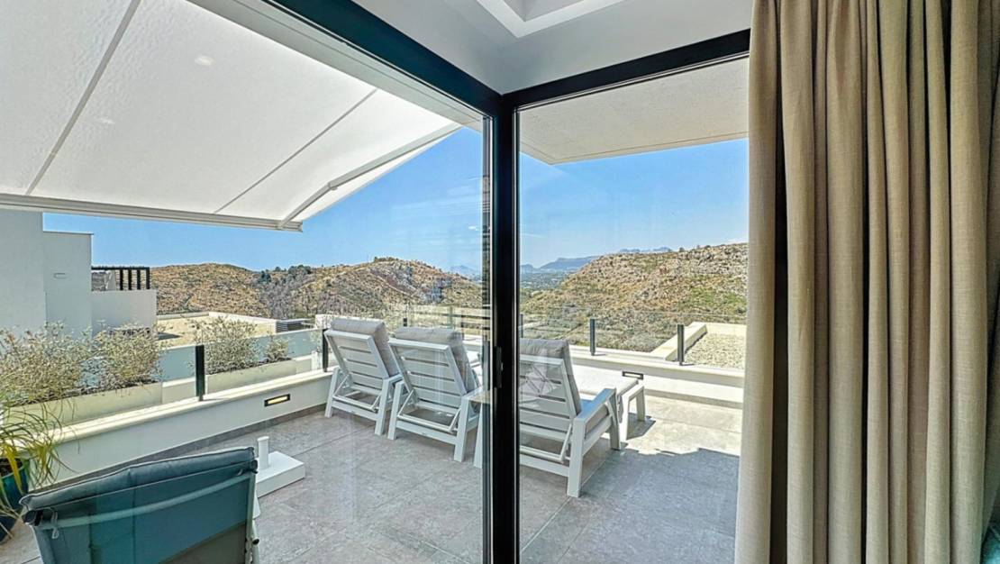 Indrukwekkend modern penthouse met panoramisch uitzicht in Montecala Gardens – Cumbre del Sol Wij presenteren u dit spectaculaire penthouse met een modern design, gelegen in het exclusieve appartementencomplex Montecala Gardens, in de prestigieuze urbanisatie Cumbre del Sol, tussen Jávea en Moraira, in de gemeente Benitachell. De woning heeft een totale oppervlakte van 165 m², zo ingedeeld dat elke ruimte optimaal profiteert van het natuurlijke licht en het prachtige uitzicht. Het heeft een binnenoppervlakte van 93 m², een ruim terras van 47 m², inclusief een gezellige overdekte ruimte met pergola van 13 m², perfect om te genieten van ontspannende momenten in de buitenlucht, en 25 m² aan gemeenschappelijke ruimtes. De penthouse heeft twee tweepersoonsslaapkamers met inbouwkasten, twee complete badkamers, waarvan één en suite voor de hoofdslaapkamer, wat extra privacy en comfort biedt. Het woongedeelte valt op door de ruime woon-eetkamer met open keuken, waardoor een moderne, functionele en zeer lichte ruimte ontstaat. Daarnaast is er een aparte wasruimte, wat de woning nog praktischer maakt. Een van de grootste troeven van deze woning is het indrukwekkende panoramische uitzicht: vanaf het terras geniet u van een uniek uitzicht over de vallei van Moraira, de majestueuze Sierra de Bernia met Calpe op de achtergrond en natuurlijk de schitterende blauwe Middellandse Zee. Wat betreft de kwaliteit en uitrusting is deze penthouse voorzien van vloerverwarming, airconditioning in het hele huis, een lift in het gebouw en afwerkingen van topmerken, die een hoog niveau van comfort en design garanderen. Dit is een unieke kans voor wie op zoek is naar een exclusieve woning in een bevoorrechte natuurlijke omgeving, met een adembenemend uitzicht. Wilt u meer informatie of een bezichtiging? Aarzel dan niet om vandaag nog contact met ons op te nemen. Wij adviseren u graag en begeleiden u tijdens het hele aankoopproces. Montecala Gardens: een modern complex in het hart van Cumbre del Sol Montecala Gardens is een exclusief complex met appartementen in moderne stijl, gelegen in de prestigieuze urbanisatie Pueblo Montecala, in de woonwijk Palmeras van de urbanisatie Cumbre del Sol in Benitachell (Alicante). Uniek ontwerp en unieke omgeving De meeste appartementen in Pueblo Montecala liggen op het zuiden, wat zorgt voor een uitstekende lichtinval. Bovendien grenst het complex aan de speciale beschermingszone Portet de Moraira en de baai Llebeig, een natuurlijke omgeving die rust en schoonheid combineert. Exclusieve gemeenschappelijke ruimtes Montecala Gardens heeft een grote verscheidenheid aan gemeenschappelijke ruimtes die zijn ontworpen voor plezier en ontspanning: Lagune zwembad, ideaal voor zonnige dagen.Kleiner zwembad, perfect om het hele jaar door te gebruiken.Ruime solariums en terrassen om van het mooie weer te genieten.Social club en tuinen om gezellig samen te zijn of te ontspannen.Nabijheid van de belangrijkste voorzieningen De strategische ligging van Pueblo Montecala brengt je dicht bij een breed scala aan voorzieningen en bezienswaardigheden: 700 meter: Toegang tot de pittoreske baai Llebeig.Van 2 tot 3 km:Morach strand en Los Tiestos baai .Winkelcentrum Adelfas met supermarkt Pepe La Sal, kapper, onderhouds- en verhuurservice, cafetaria, restaurant La Cumbre en apotheek.Van 4 tot 5 km:Mercadona supermarkt.De prestigieuze internationale school Lady Elisabeth.Hippisch en sportcentrum met paddle- en tennisbanen en bar.Van 6 tot 7 km:Mas y Mas supermarkt.Het stadscentrum en de stranden van Moraira en El Portet.13 km: het beroemde Arenal strand in Javea.Het perfecte huis aan de Costa Blanca Montecala Gardens is de ideale plek voor wie op zoek is naar een moderne levensstijl, midden in de natuur en met alle voorzieningen bij de hand. Mis deze kans niet! Neem vandaag nog contact met ons op en ontdek alles wat Montecala Gardens te bieden heeft.