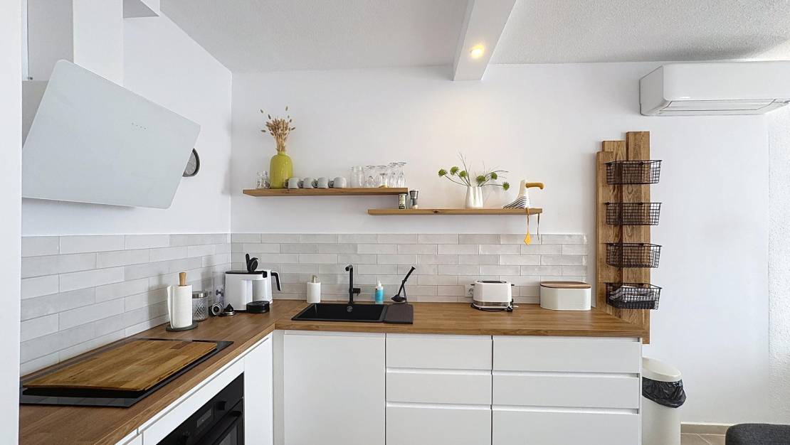 Gerenoveerd appartement met spectaculair uitzicht op zee in Pueblo Panorama – Cumbre del SolEen woning die comfort en exclusiviteit combineertWij presenteren dit gerenoveerde appartement gelegen in de prestigieuze wijk Pueblo Panorama, binnen de urbanisatie Cumbre del Sol, tussen Jávea en Moraira in de gemeente Benitachell. De woning heeft een totale oppervlakte van 89 m², waarvan 69 m² voor de woning en 20 m² voor het terras, een perfecte plek om te genieten van het onvergelijkbare uitzicht op de Middellandse Zee. Indeling en belangrijkste kenmerkenDit appartement is ontworpen om comfort en functionaliteit te bieden in elke hoek: Twee tweepersoonsslaapkamers met inbouwkasten.Ruime badkamer.Woonkamer met open keuken, perfect geïntegreerd met het terras.Drie opbergkasten in de hal, die veel opbergruimte bieden.Privéterras met panoramisch uitzicht, de ideale plek om te ontspannen en van de zee te genieten.Airconditioning met warmte- en koelfunctie in alle kamers, voor comfort het hele jaar door.Een woning die klaar is om te betrekken, perfect als hoofdverblijf, tweede vakantiehuis of investering. Pueblo Panorama – een bevoorrechte omgevingDe appartementen van Pueblo Panorama vallen op door hun zuidoostelijke ligging, die de hele dag door veel lichtinval en een uniek uitzicht op de Middellandse Zee garandeert. De bewoners kunnen genieten van 8 gemeenschappelijke zwembaden, verspreid over verschillende zones, elk met zonnige terrassen om te ontspannen en te genieten van het klimaat van de Costa Blanca. Bovendien is de ligging onberispelijk: 1 km: Internationale school Lady Elisabeth.2 tot 3 km: Playa del Moraig en Cala de los Tiestos, evenals het winkelcentrum Adelfas met supermarkt Pepe La Sal, restaurant La Cumbre, apotheek en meer.4 tot 5 km: Supermarkten Mercadona en Mas y Mas, naast het stadscentrum van Benitachell.6 tot 7 km: Het charmante Portet de Moraira, met zijn stranden en mediterrane sfeer.11 km: Het levendige strand van Arenal in Jávea.Beleef de Middellandse Zee vanaf uw terrasDit appartement in Pueblo Panorama – Cumbre del Sol biedt u de kans om te genieten van een unieke levensstijl: rust, natuur, voorzieningen in de buurt en een adembenemend uitzicht. Wilt u meer weten?Neem vandaag nog contact met ons op en ontdek hoe deze woning uw volgende levensproject kan worden.
